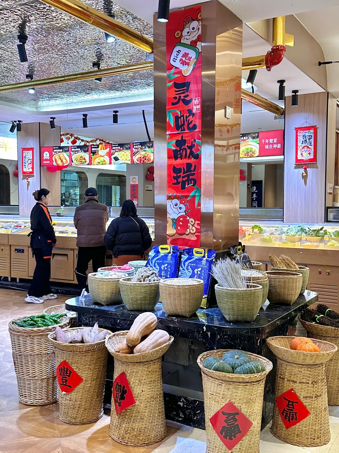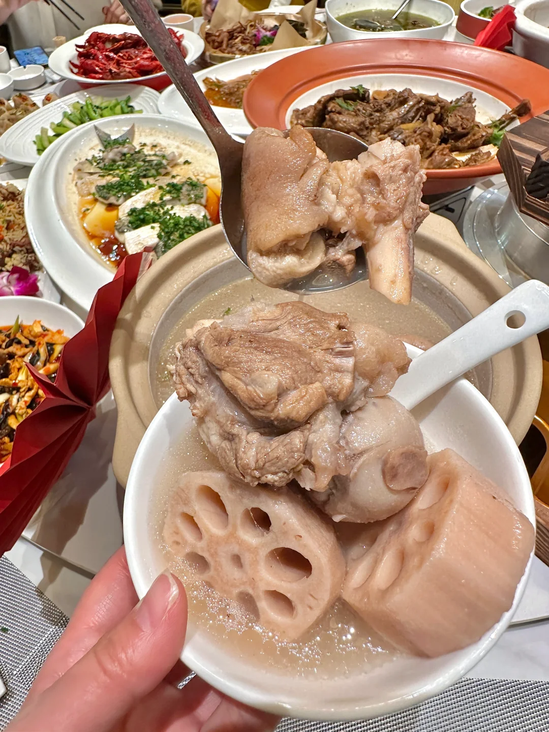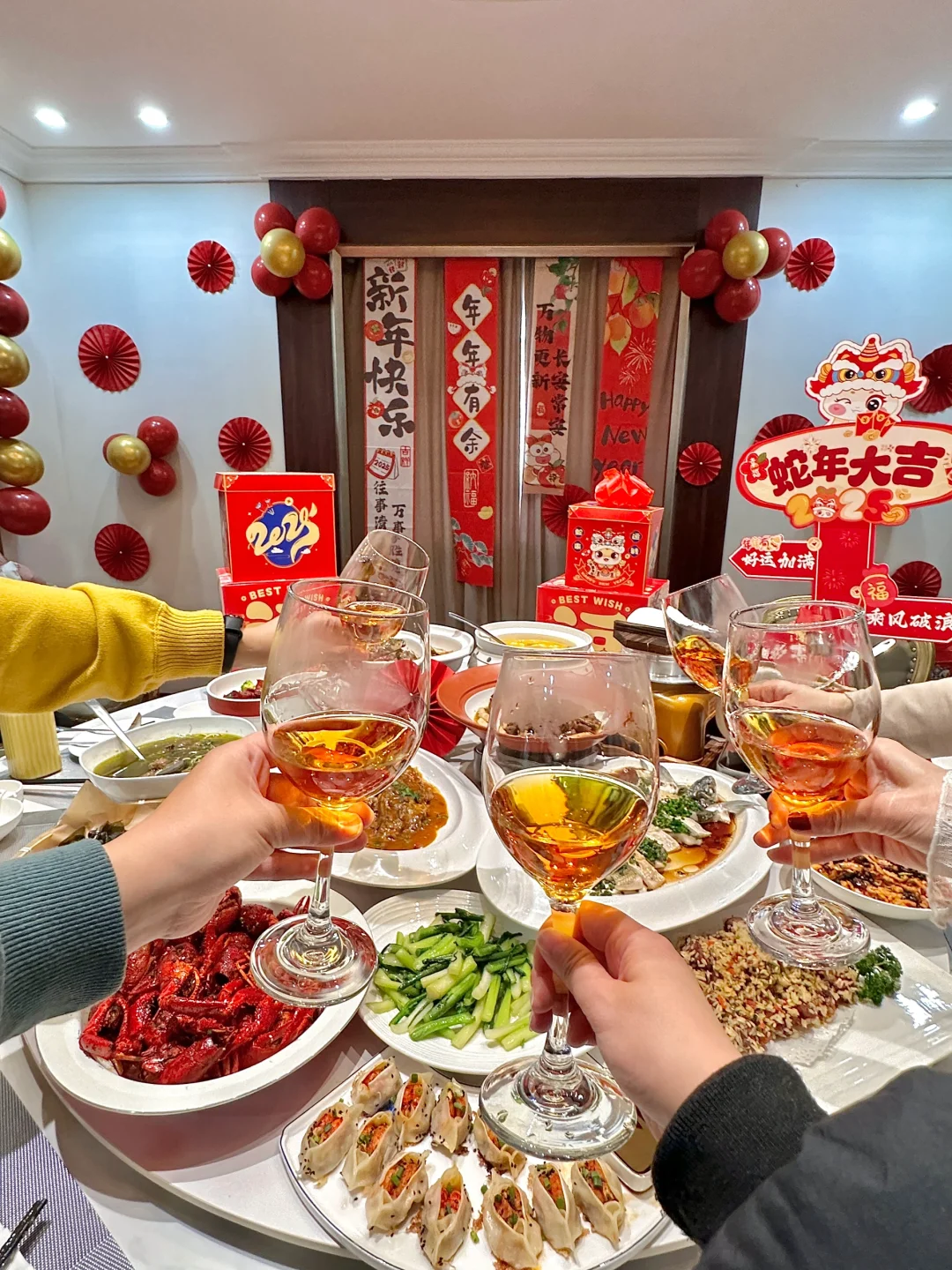 年饭定这里等着挨夸!!好吃又不贵!布置的太有年味了!🧨🧧团年饭的合照妥妥氛围大片~ ·这个季节还能吃到新鲜的潜江油焖大虾,光这一道菜已经赢麻了!那饱满的虾肉和硕大钳子,嘎嘎香!