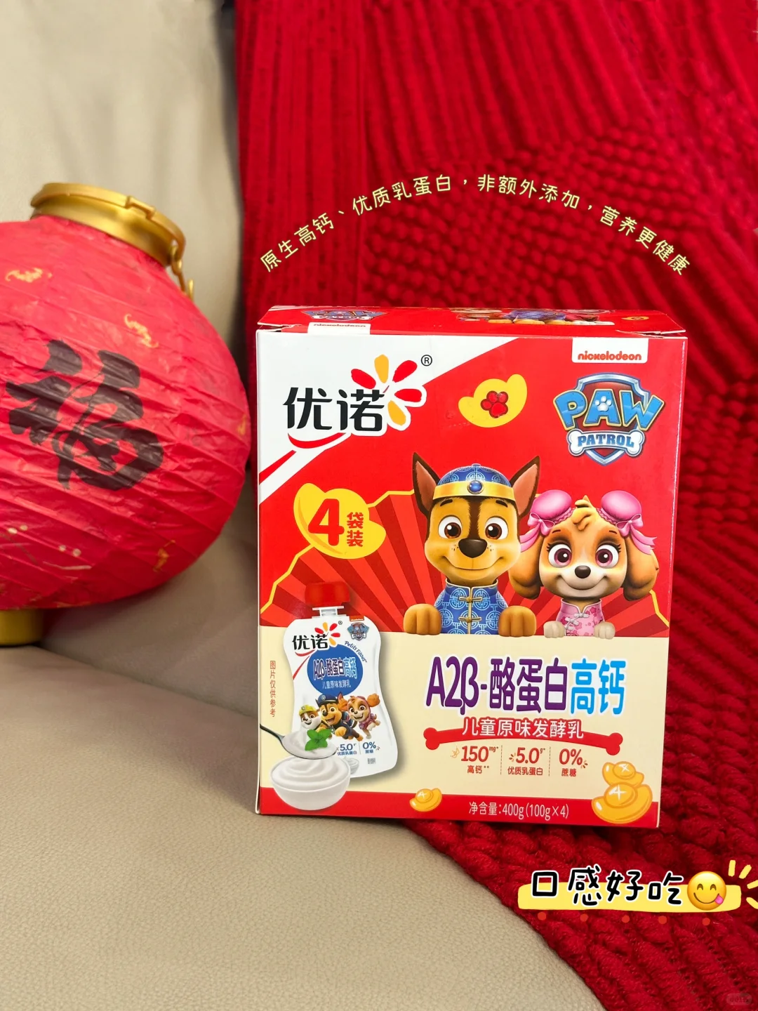 马上又要过年啦~诺子妹妹已经开始寒假生活了 在家里必不可少的就是她从小喝到大的优诺A2高钙儿童酸奶 这次在京东买了新春包装的,汪汪队+新春包装 简直是妹妹的天菜~ 酸奶的口感绵密,奶味十足的 每百克含有150mg原生高钙和5.0g原生优质乳蛋白,又有营养又好吃 A2型奶源更加亲和好吸收,对妹妹的玻璃胃非常友好~ 原味和蓝莓味都是0蔗糖的啦! 很健康,可以放心让妹妹吃 蓝莓味是妹妹的最爱! 红红火火的新年包装 送礼也超级合适哇~