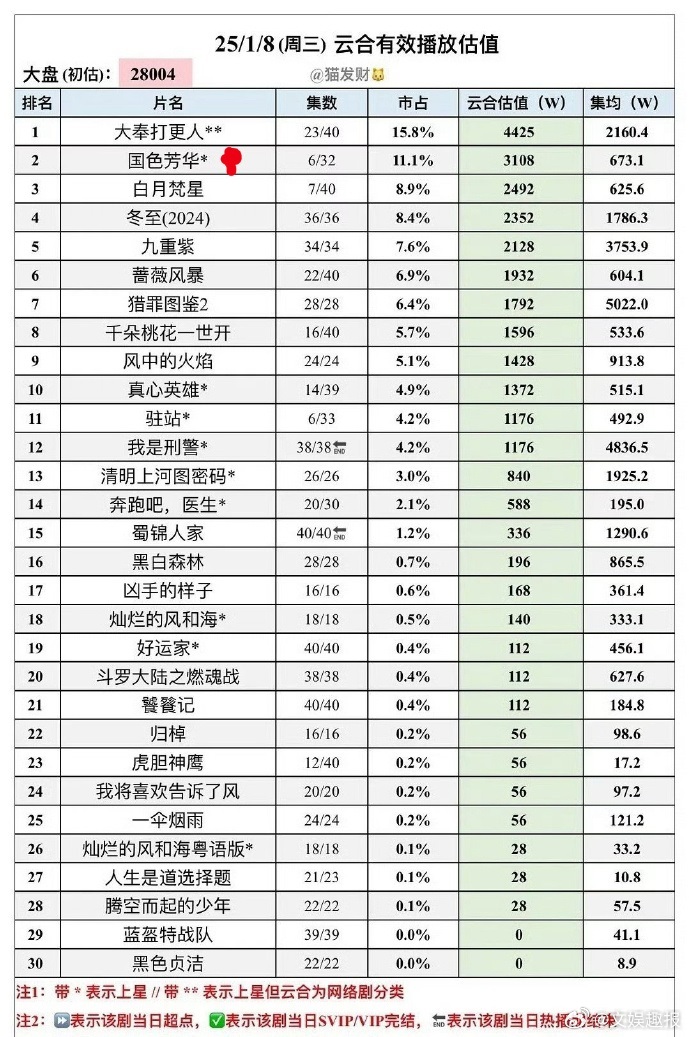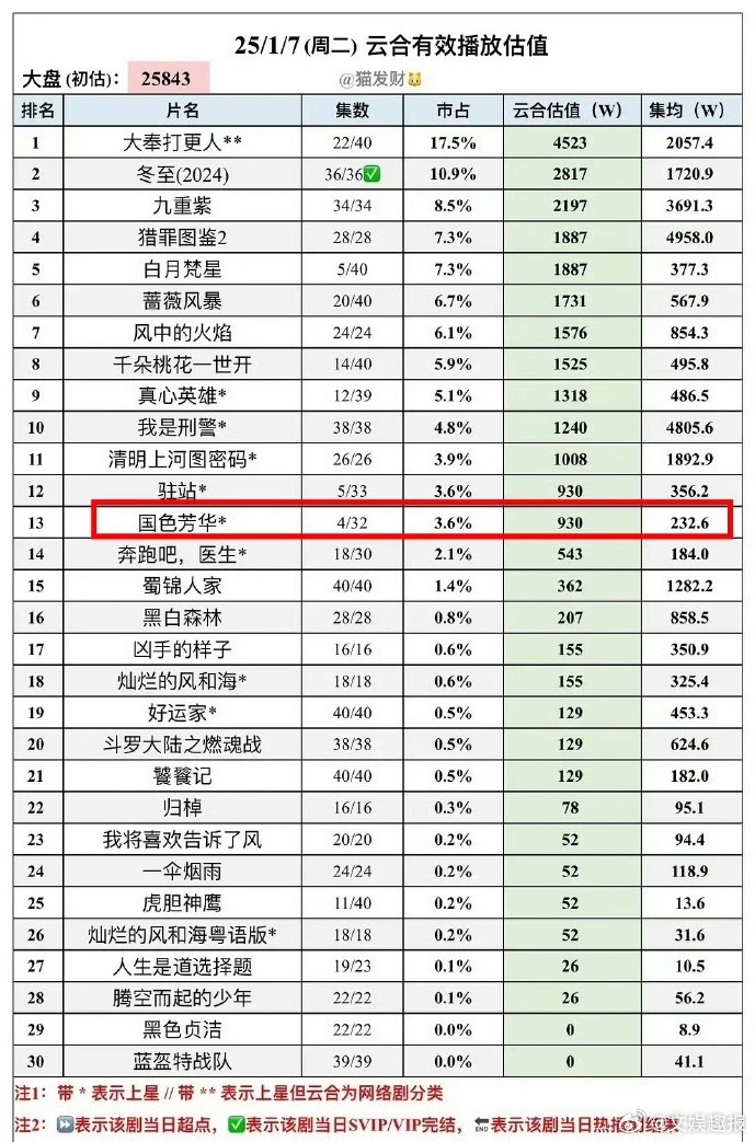 国色芳华开播第三日云合 国色芳华云合走势 《国色芳华》开播三日成绩出众,首日 930w 开启热度,次日 3108w 热度升级,第三天破 4000w 巅峰相见,走势表明是爆款预定,推荐给大家。