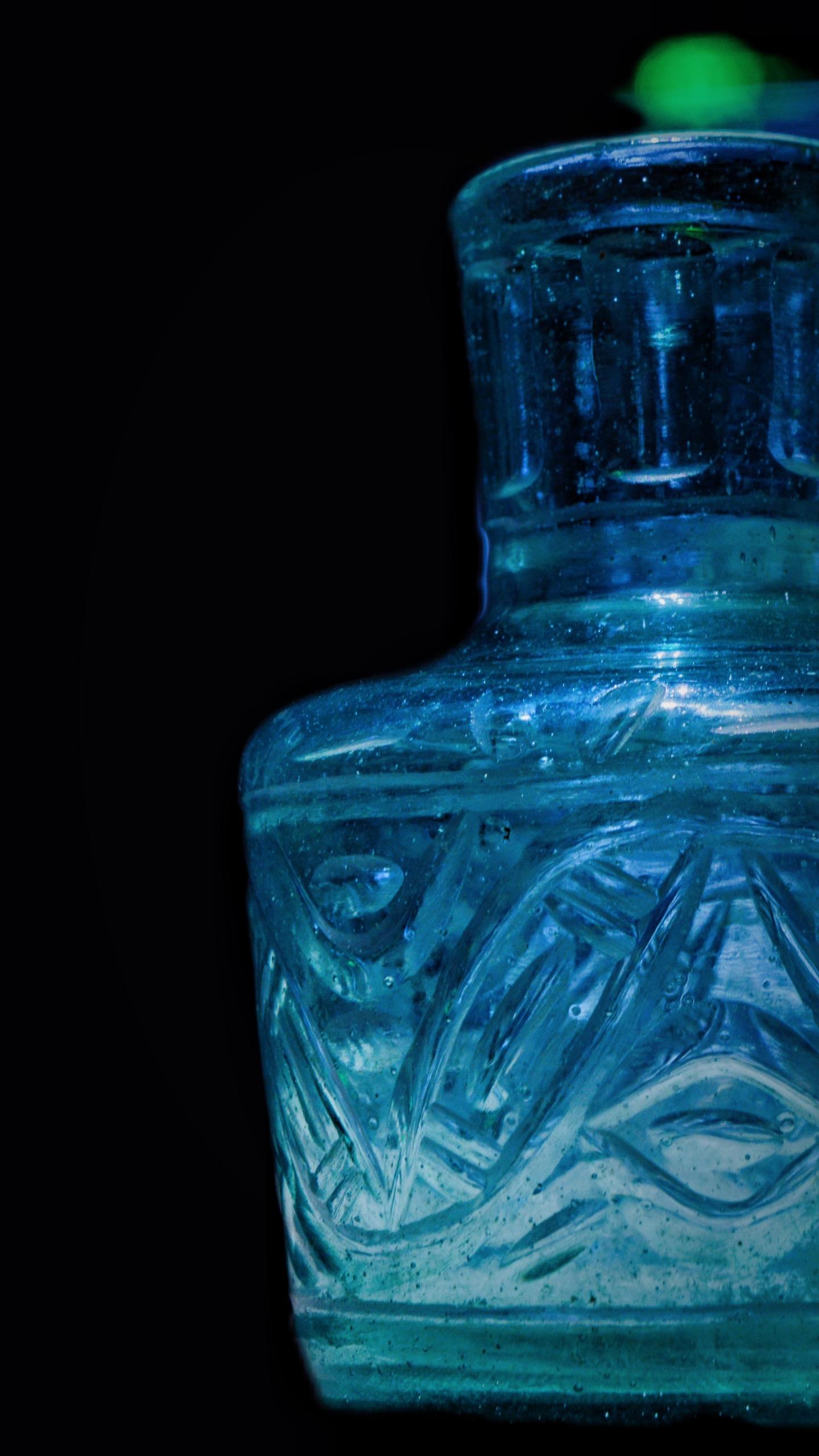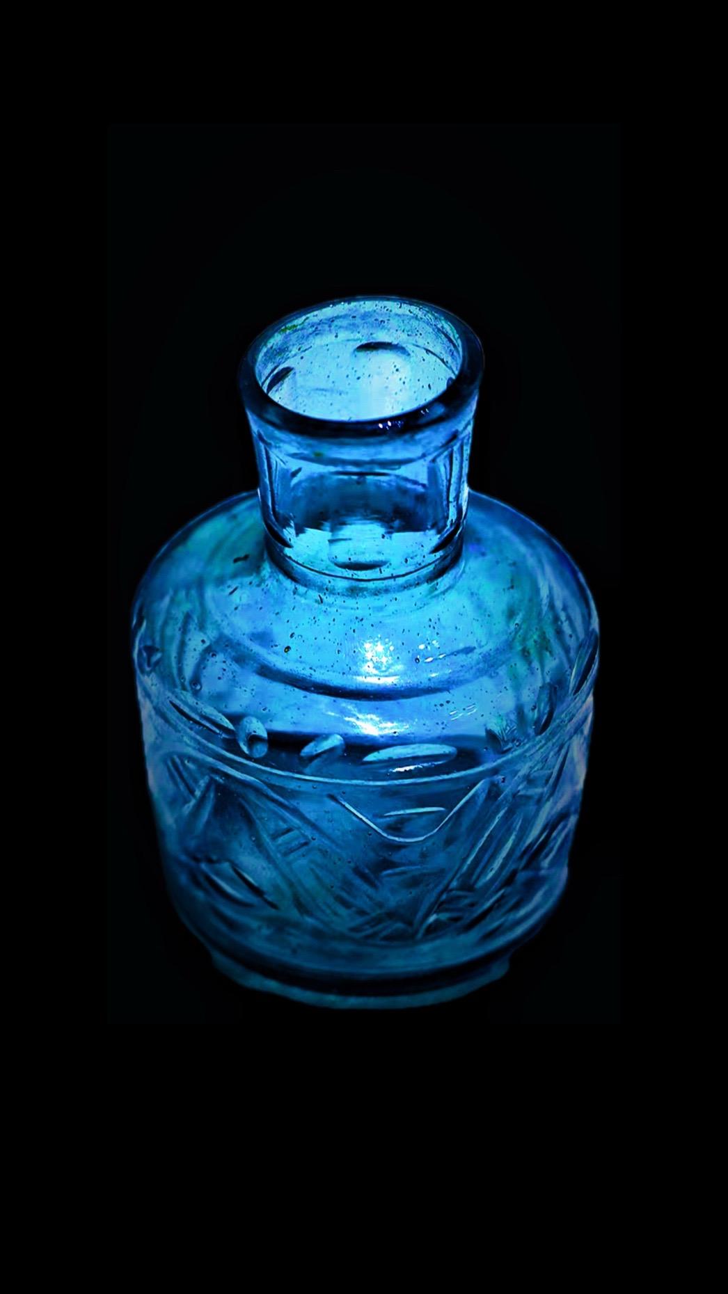 应为北宋时期伊朗地区制作的蓝色透明阔口瓶