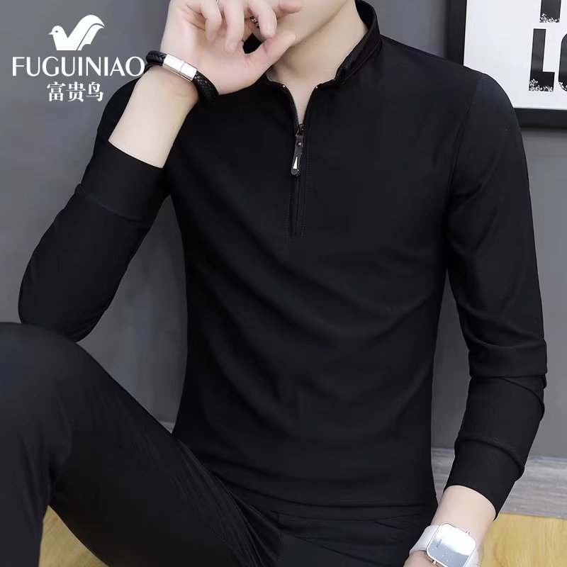 富贵鸟长袖t恤男士上衣服秋冬季2024新款潮牌休闲半拉链卫衣男装