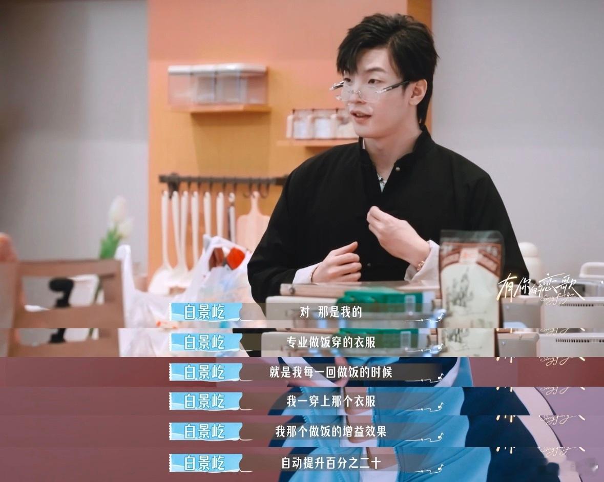 小白不语只是一味在恋综埋头做饭 有你的恋歌 小白真的是节目中的“反差萌担当”!虽然大家都在忙着谈恋爱,只有他安静地在厨房里专注做饭,他用菜肴征服了所有人,根本不需要甜言蜜语,真是太有魅力了!