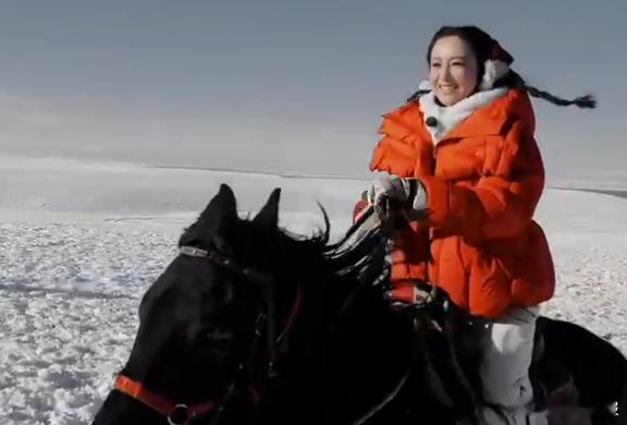 佟丽娅天马踏雪聆听自然的声音丫丫在雪地里策马而行,感受着风与雪的轻抚,仿佛所