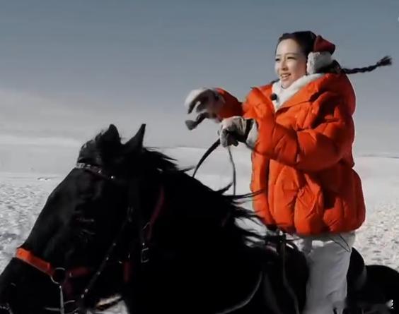 佟丽娅天马踏雪聆听自然的声音 丫丫在雪地里策马而行,感受着风与雪的轻抚,仿佛所有烦恼都被抛到九霄云外。