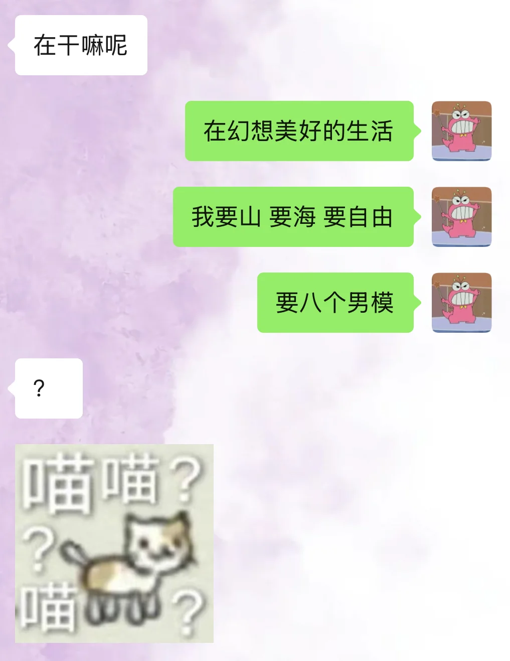 一天问八百遍在干嘛[暗中观察R] 和男朋友的日常问候 给平淡的生活增加点小情趣~ 宝宝们快来抄作业[派对R][派对R]