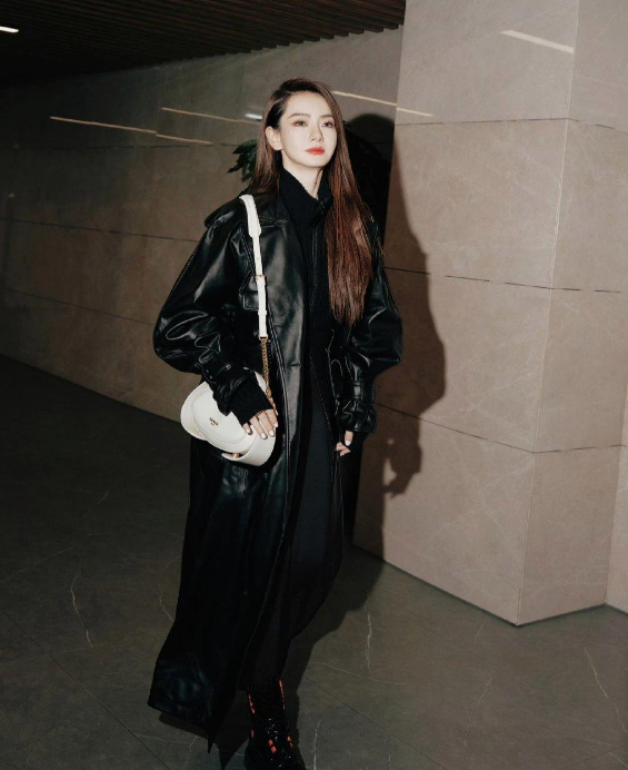 戚薇超A气场全开,黑白配穿搭简约又时尚,挎包点缀更显精致品味。