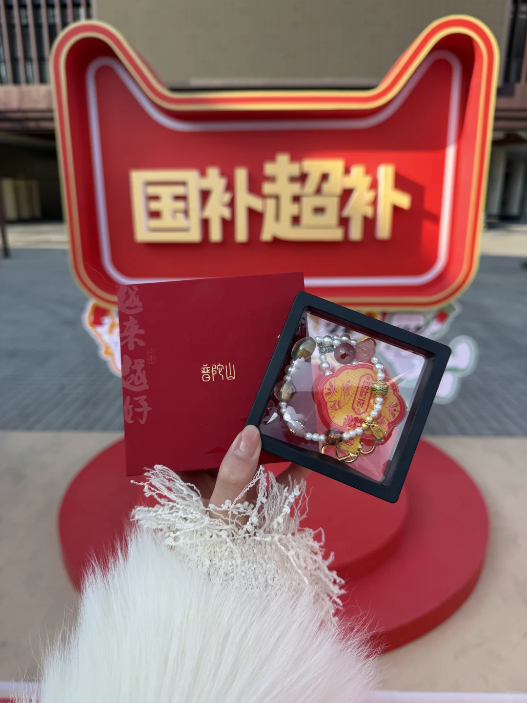 和朋友在运河天地遛弯 偶遇了天猫3C数码国补的线下活动!!! 作为好奇宝宝的我 这不得去凑个热闹 天猫给到你年终补贴 政府补贴真的不要太划算!! 至高补贴20% 买手机,相机、电脑、耳机、投影仪 及数码产品都可以领!! 天呐‼我之前原价买的手机算什么捏555 刚好一直想买一个手机送妈妈 没想到赶上了今天手机国补上线 这波优惠整整15% 我立马下单!! 现场还可以抽红包 送印有迪丽热巴的抱枕 极米投影捏捏还有喵速达 和普陀山联名电子祈福新品 555好幸福