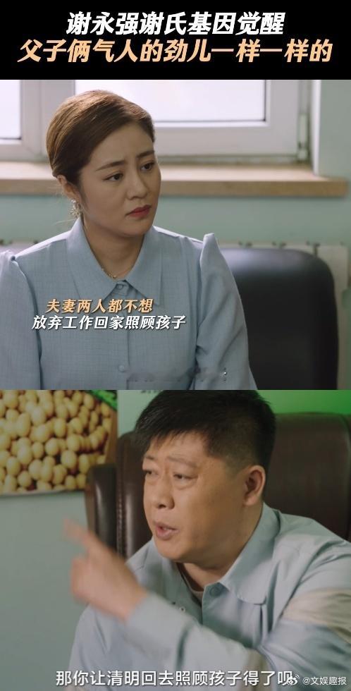 谢永强觉醒谢氏烦人基因 天呐,谢永强这谢氏烦人基因一觉醒,那小心眼和杠人本事简直是谢广坤的翻版。非要小蒙放弃事业多照顾孩子,还说得头头是道。一旦小蒙不认同,就开始拿白清明吃飞醋,又窝囊又硬气,真让人搞不懂他的脑回路。