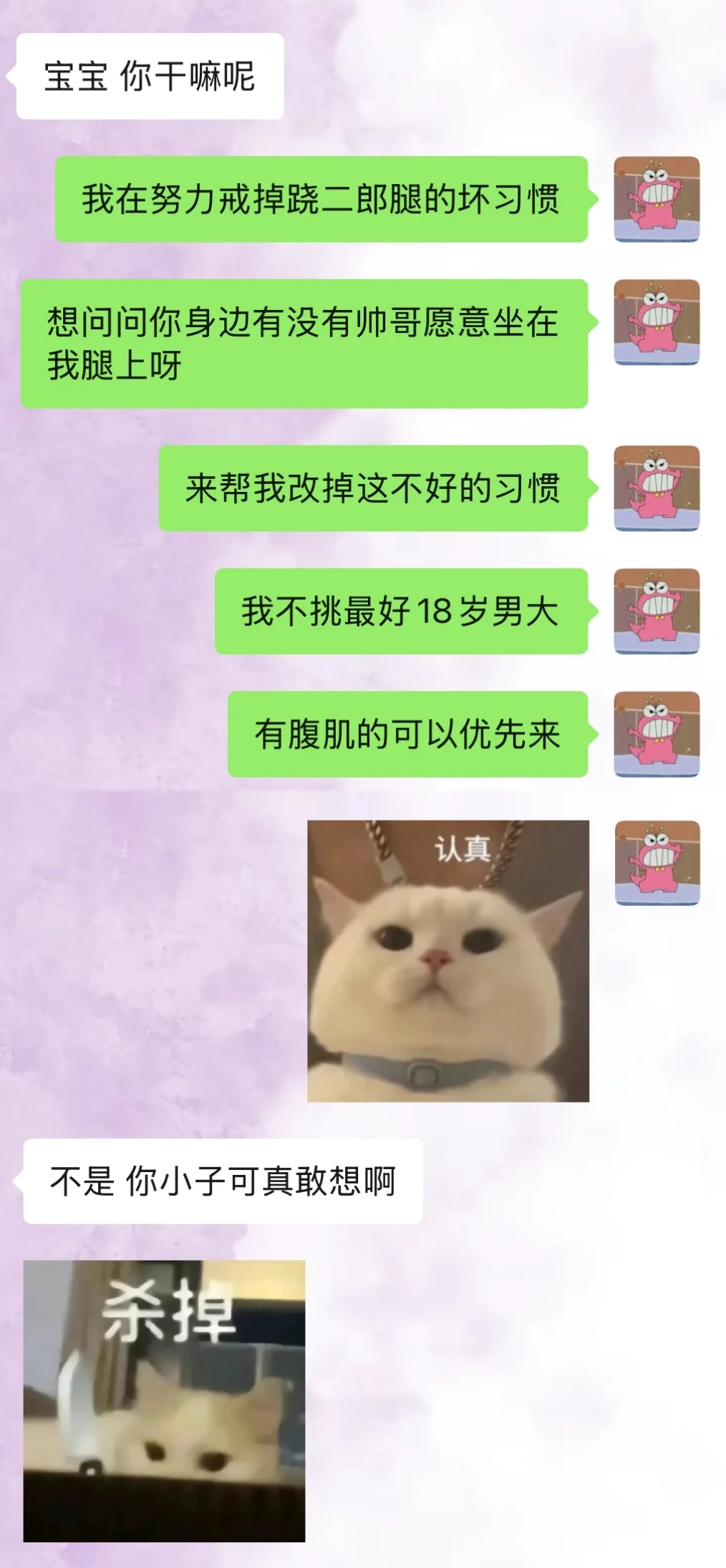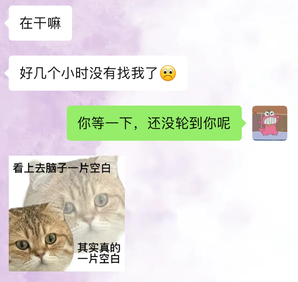 当男生问你“在干嘛?” 不要中规中矩的回答[暗中观察R][暗中观察R] 胡天扯地才是正确的打开方式[自拍R] 这还不得把他钓成翘嘴呀[偷笑R][偷笑R]