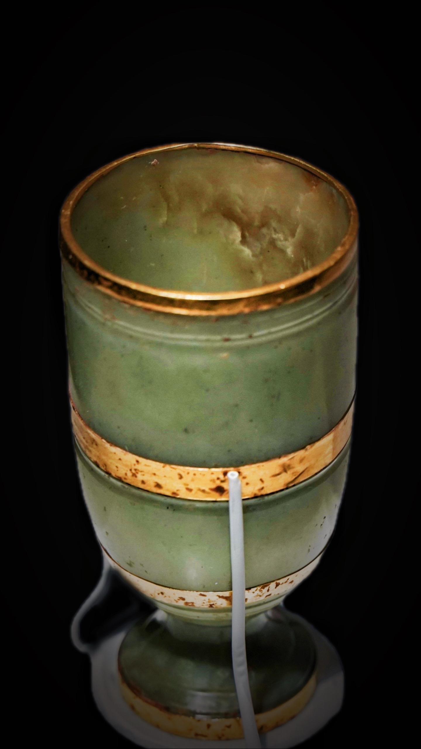 这件玉杯口沿、腹部、底部各有一周金釦