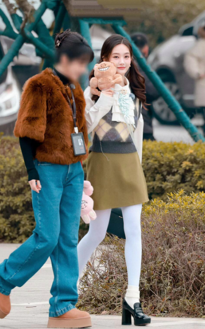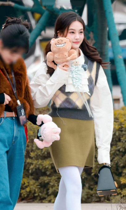 李一桐的搭配真是萌到不行,双马尾加上甜美的服装,完全展现出她的乖巧可爱。领结来自Simone Rocha,马甲是Marni的经典设计,玩偶则选了Potdemiel,鞋履则搭配了Gianvito Rossi的高跟鞋,整体造型软萌又精致,完美诠释了甜美风格。每一件单品的选择都恰到好处,散发出浓浓的少女感,让人心动不已。