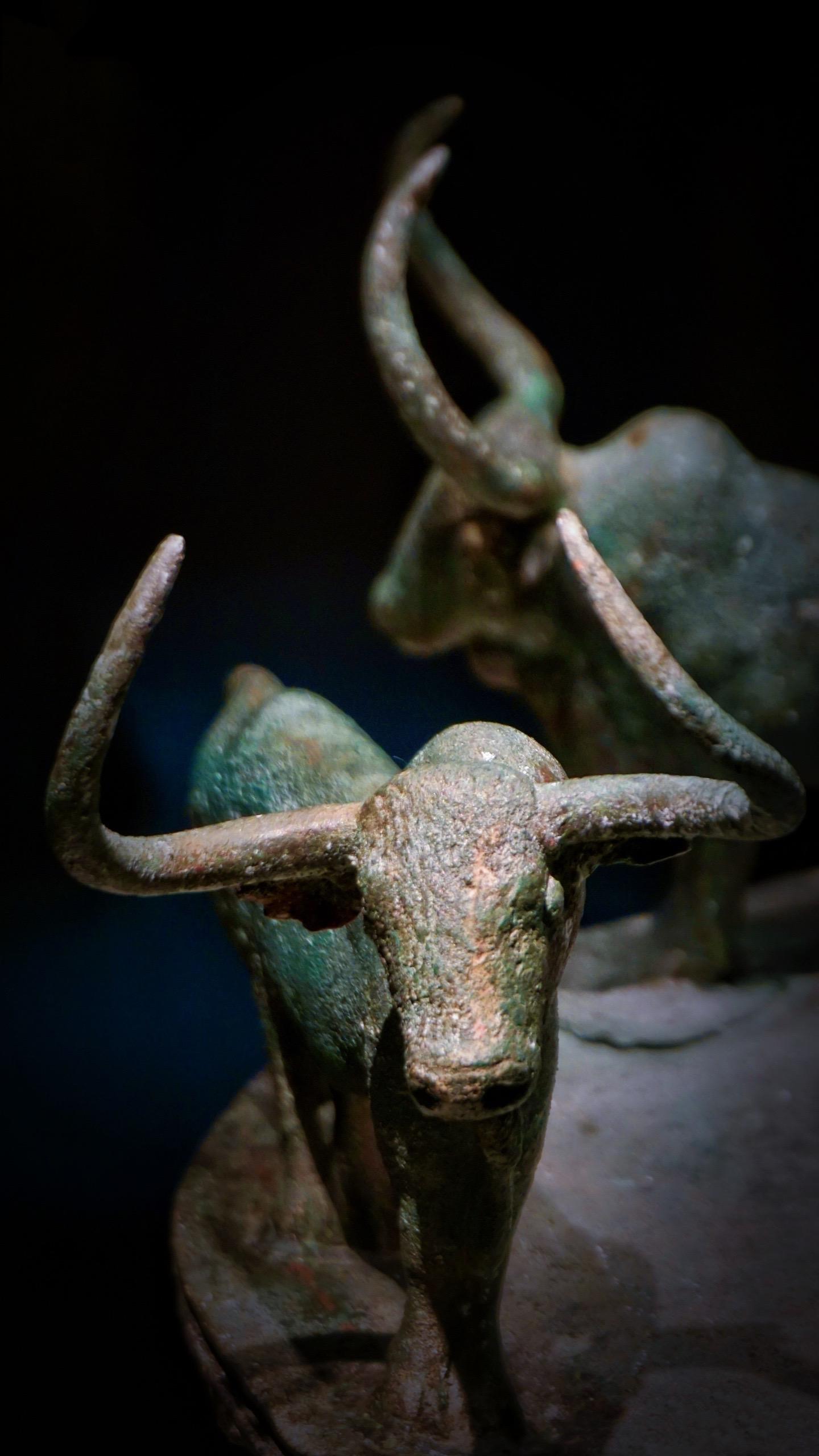 器物盖上有四只体格健硕的牛逆时针围绕中心作奔跑状