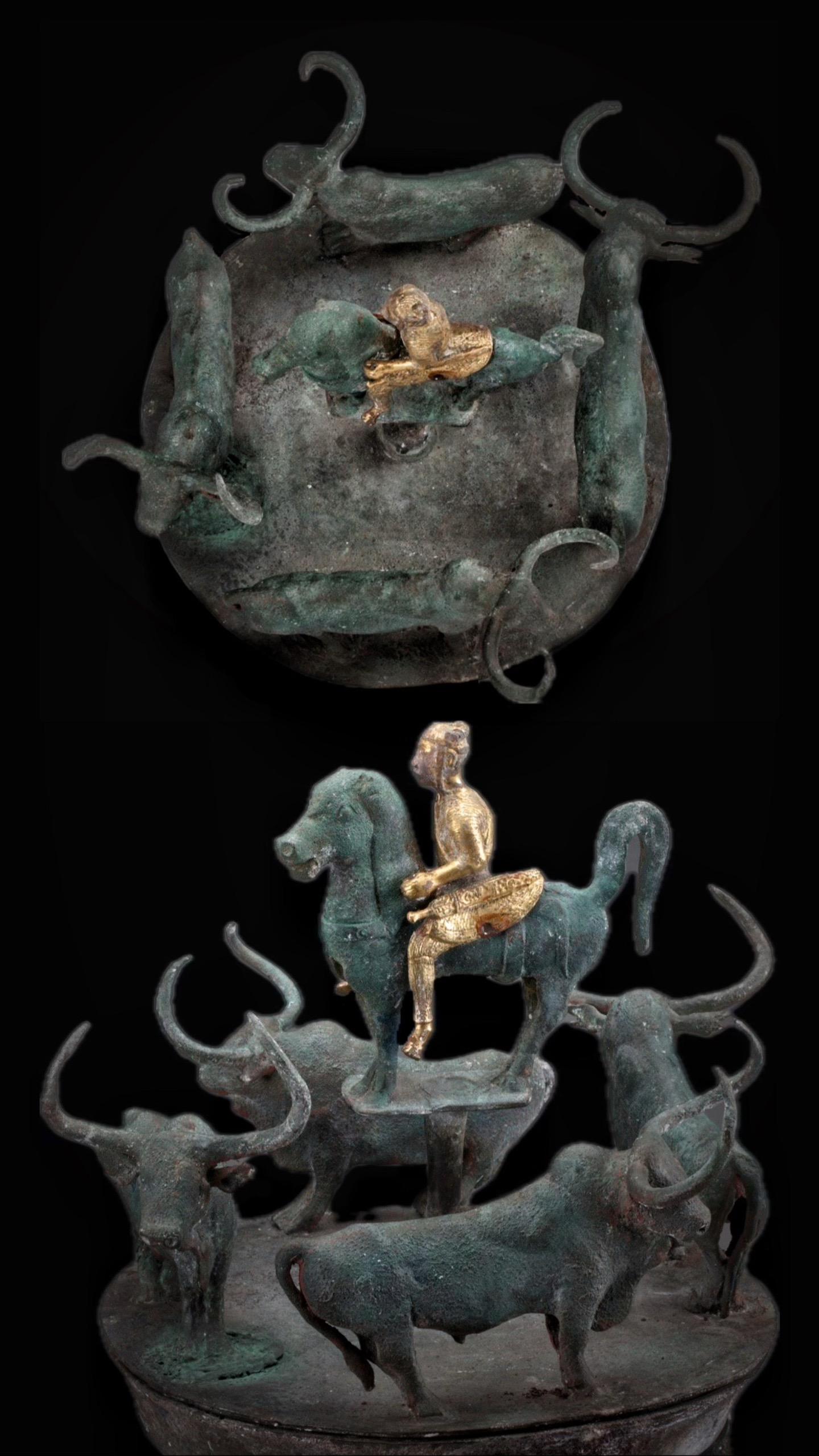 西汉·四牛鎏金骑士铜贮贝器。昆明当欲满,葡萄应作花