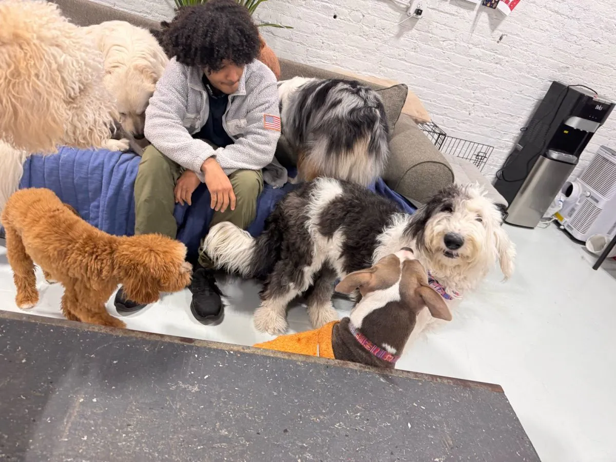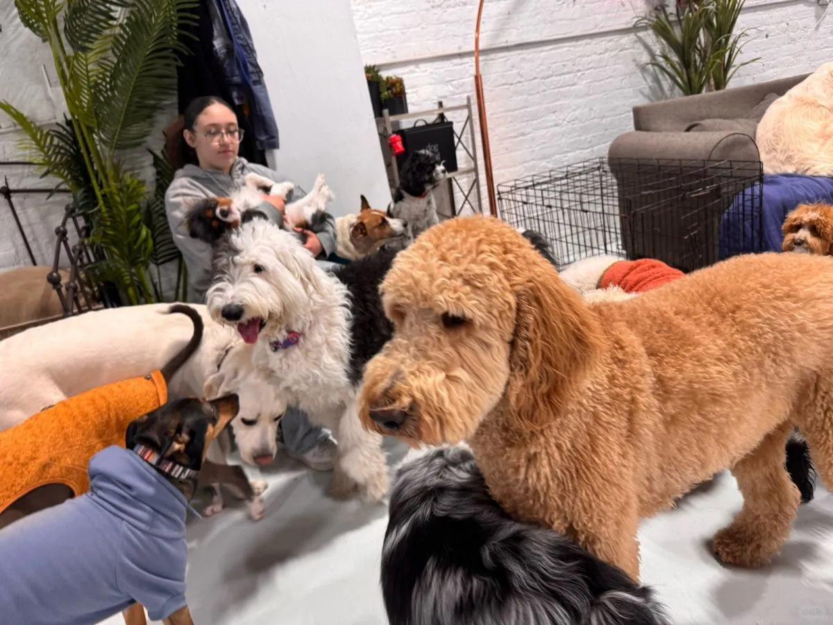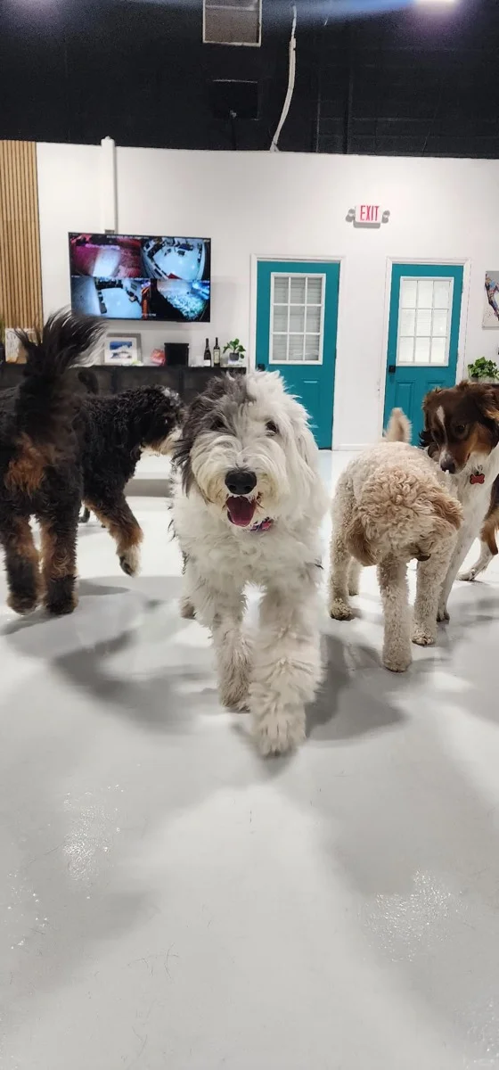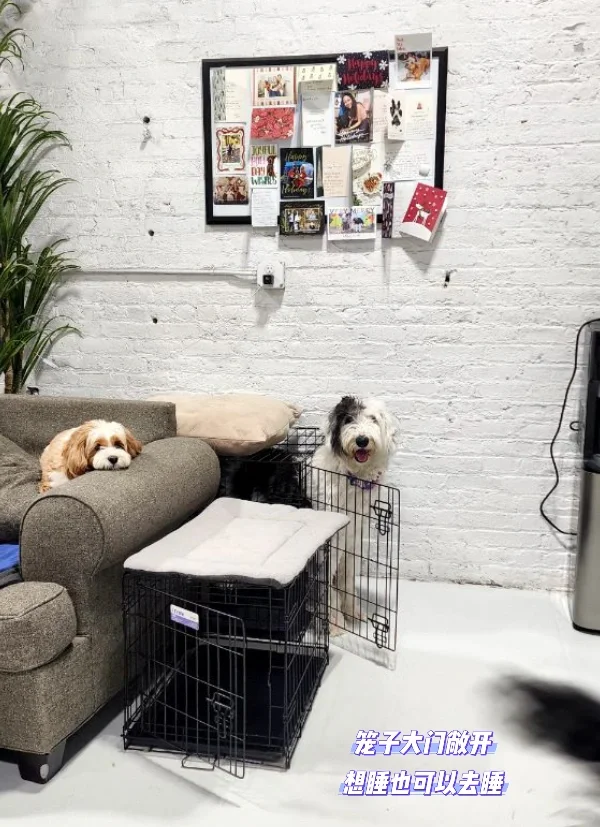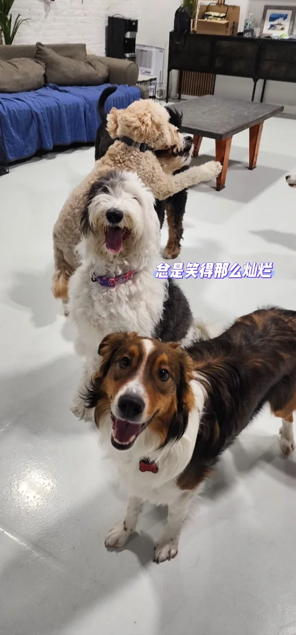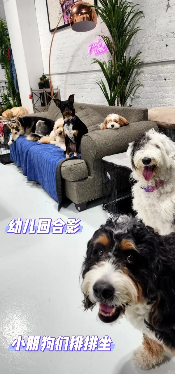 这次寄养之前带Emma过来面试了一次,感觉还行就选了这家气氛比较温馨自在,狗可以随意走动没有那么多规矩的(Emma不习惯笼子)。他们不按狗身材大小分类而是按性格分区域,i狗区狗子各自散落趴在角落,e狗区狗子们打闹玩成一片停不下来。我日常爱看他家ins stories,每天都是各种可爱狗狗嬉戏打闹的画面。