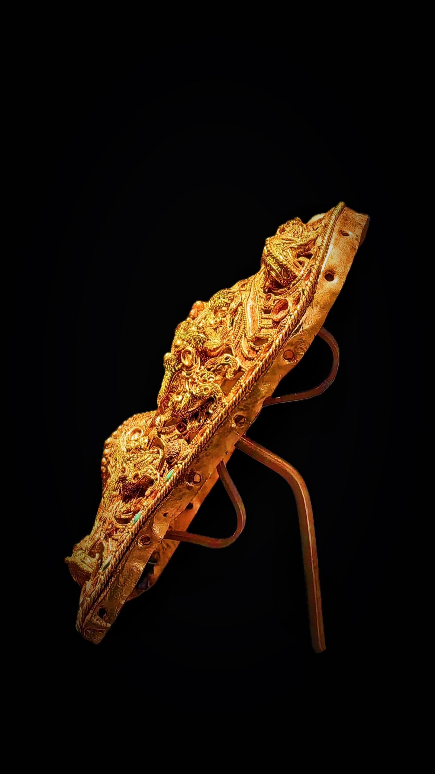 金带扣长9.2厘米、宽7厘米,2009年寿县寿春镇计划生育服务站工地砖室墓出土,国家一级文物,安徽楚文化博物馆藏,为其镇馆之宝之一