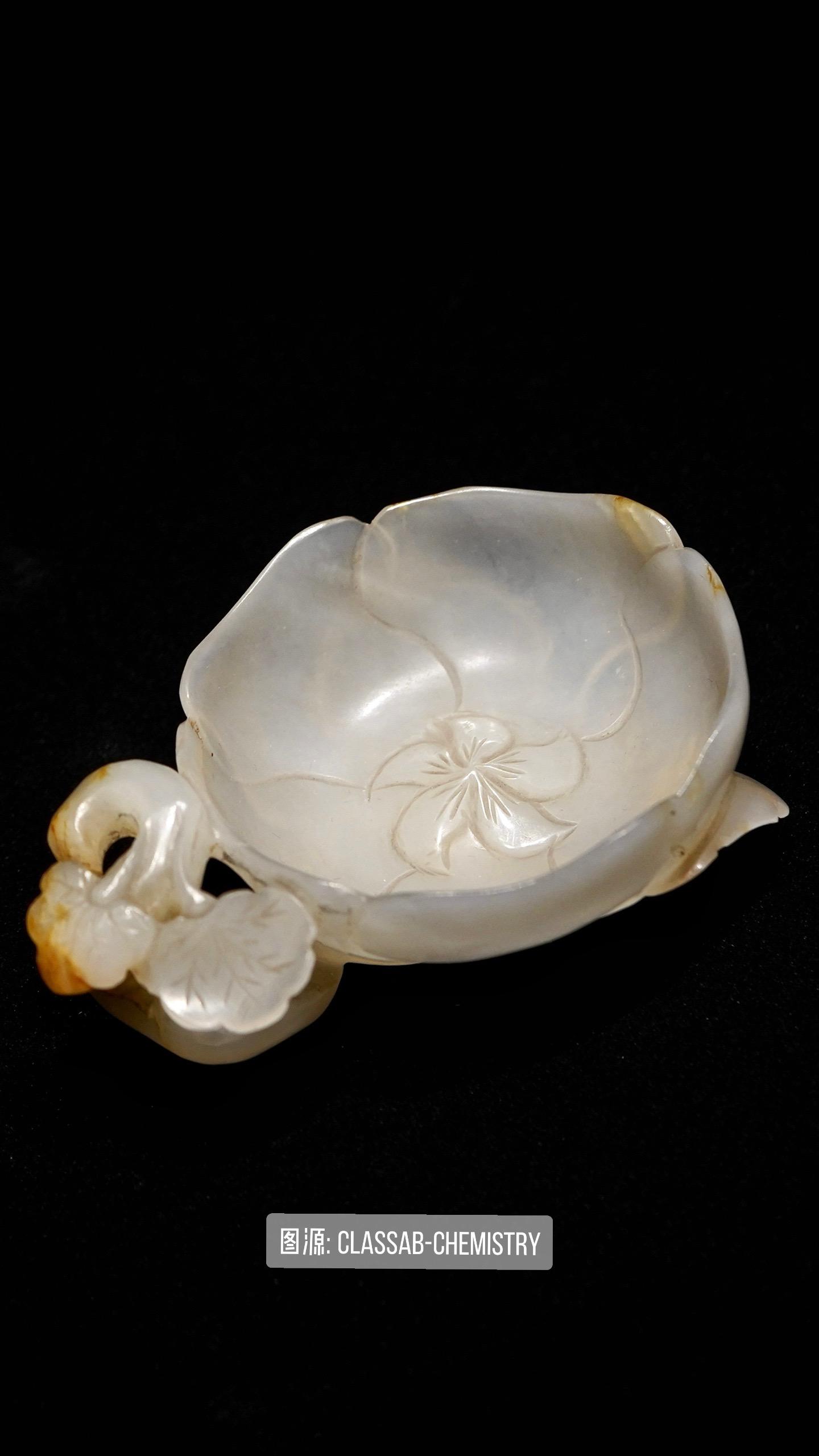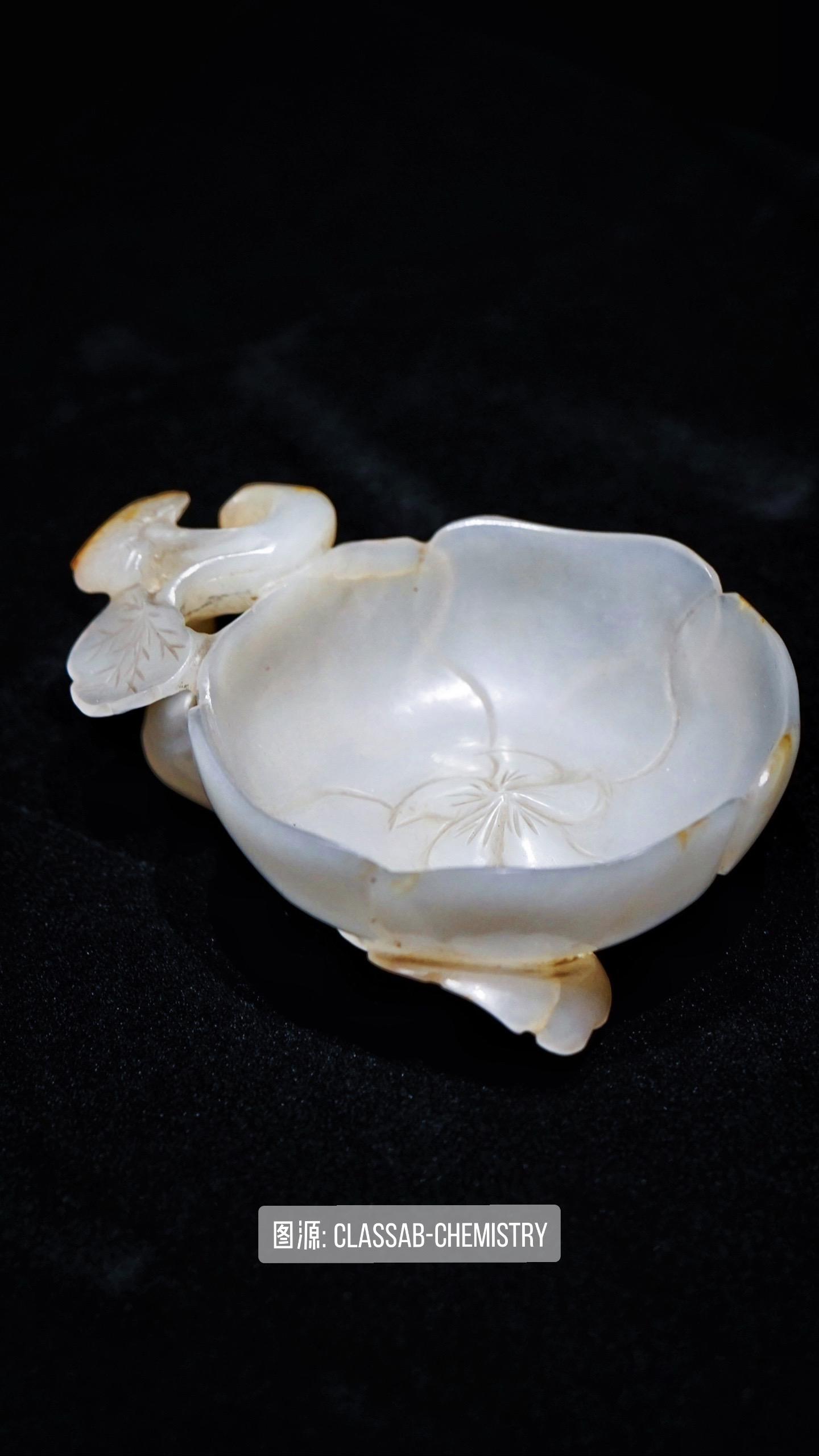 这件白玉花形杯是一件洗笔用的玉洗,属于“文房四宝”——笔、墨、纸、砚之外的文房用具