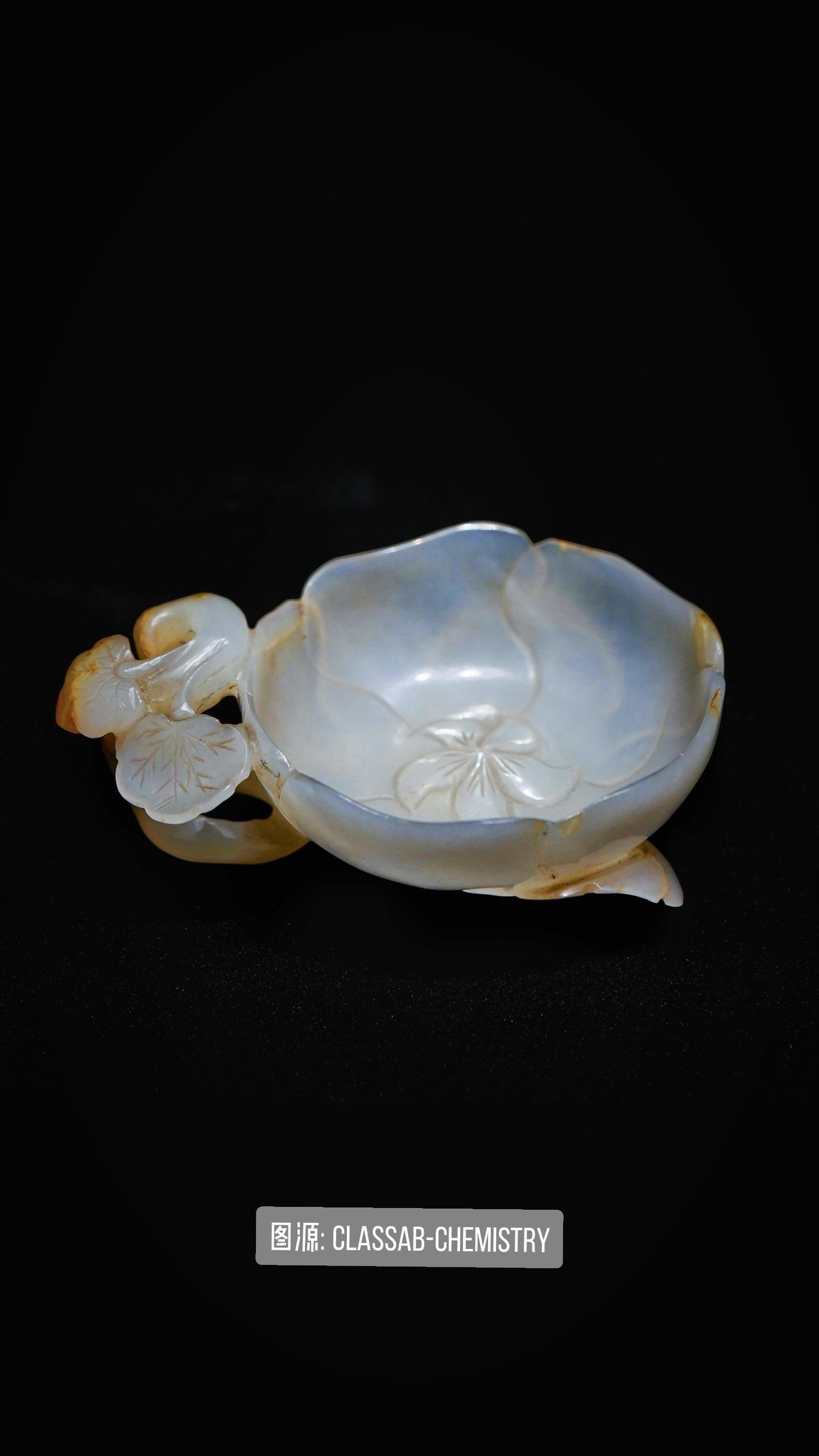 明代•白玉花形杯。端书洗砚更焚香,冷淡生涯与转长