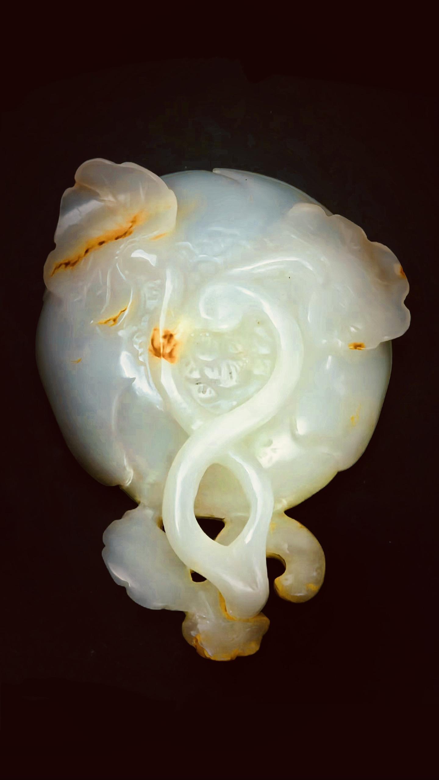 玉杯为和田白玉制,玉质洁白细腻、温润纯净,釆用圆雕与镂雕相结合的手法琢磨而成