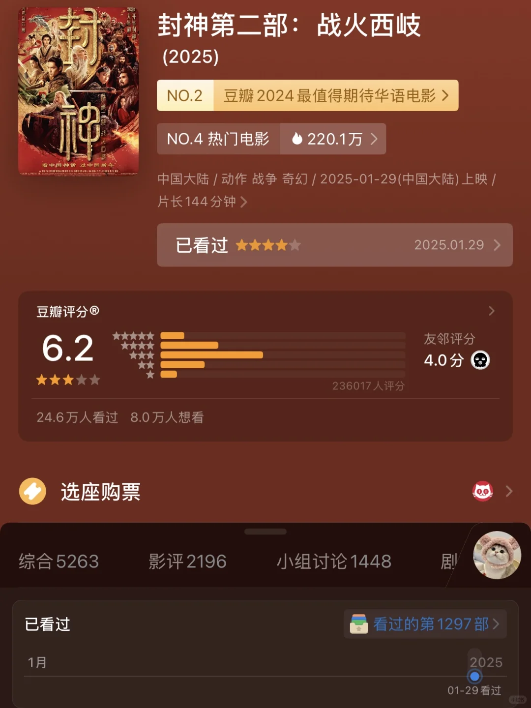 哪吒>封神2>蛟龙行动>射雕=唐探