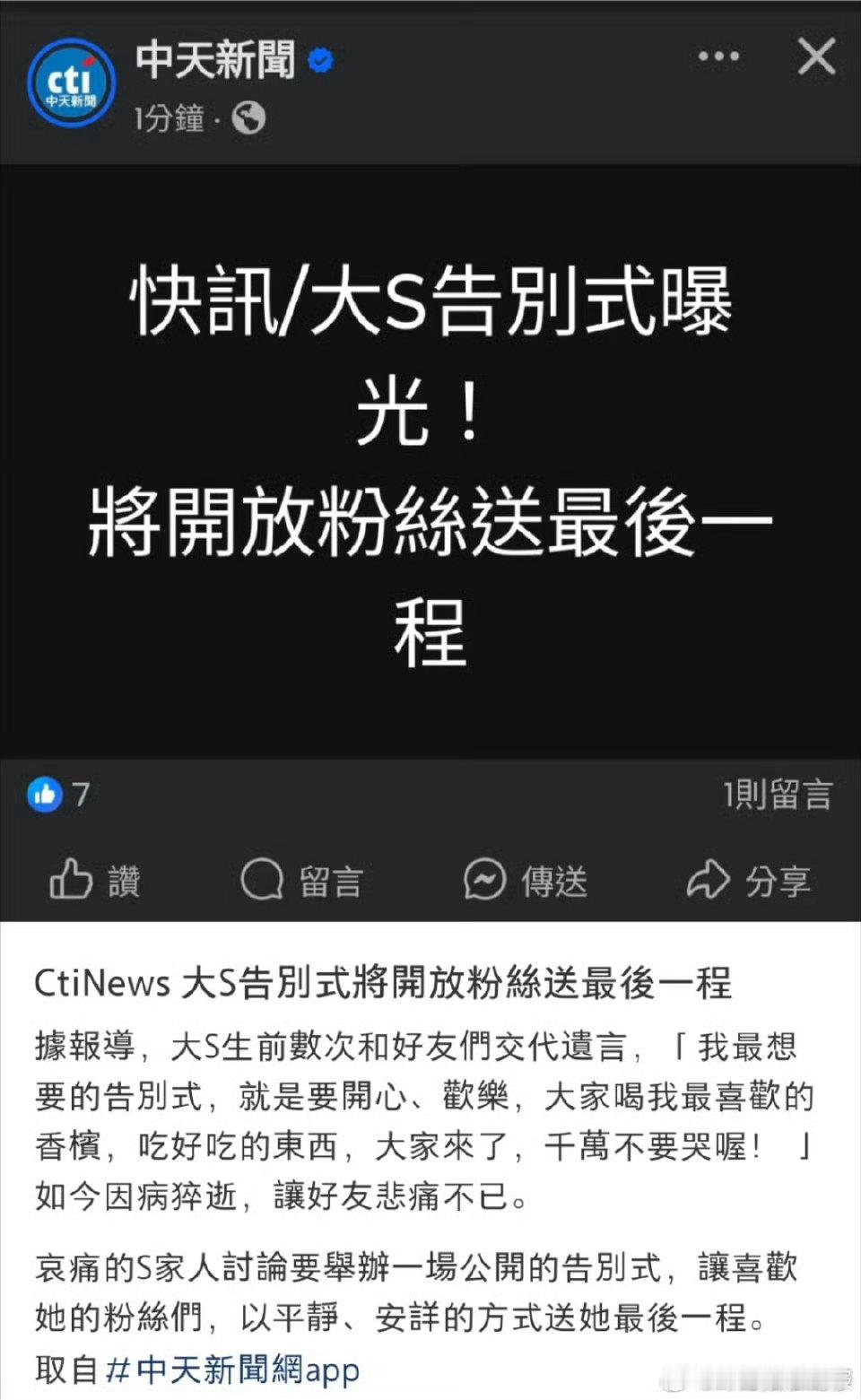大S曾说想要开心欢乐的告别式,现在家人将举办公开追悼仪式,粉丝们可以去赴这场最后