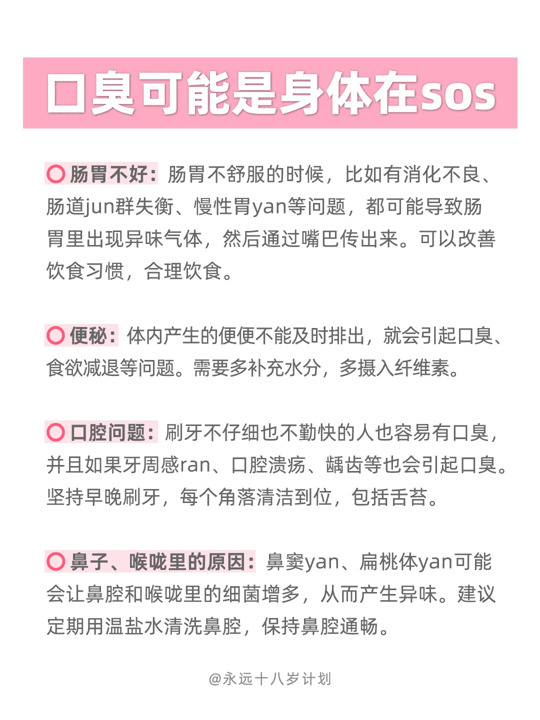 如果口臭问题持续存在或加重,那要及时检查自己是否有以上这些问题。这8种食物只能一定程度上让你变香香,但无法根治口臭问题噢。