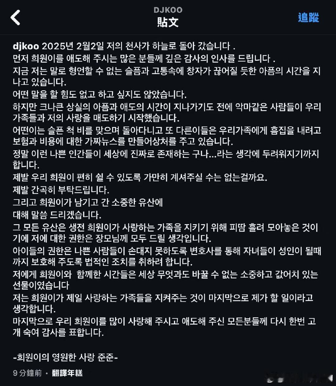 具俊晔发文强调,大 S 的遗产是她生前为了保护自己的家族,用自己心血换回来的。所以他放弃遗产,会把所有的继承权利转让给大 S 的妈妈。