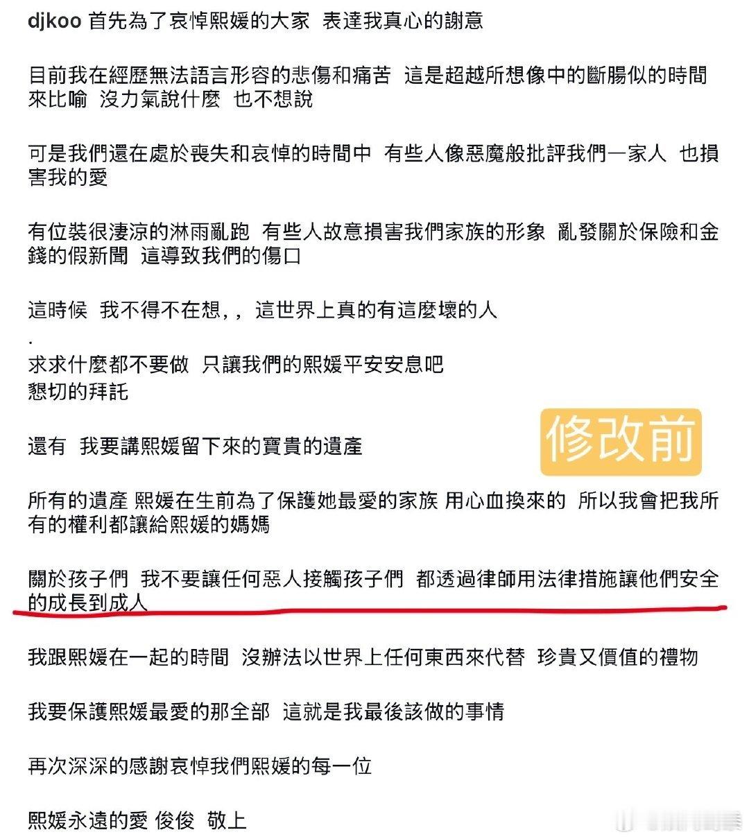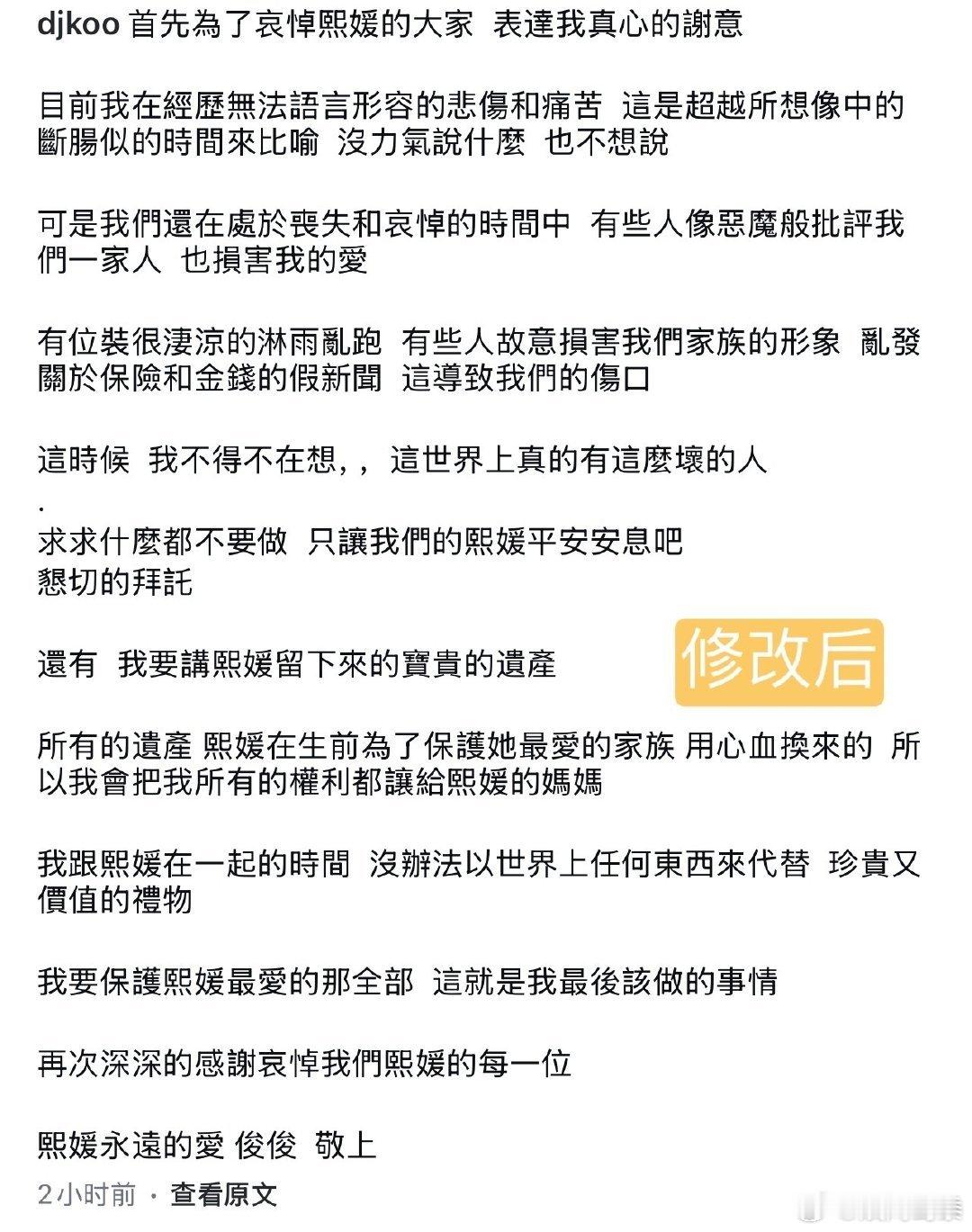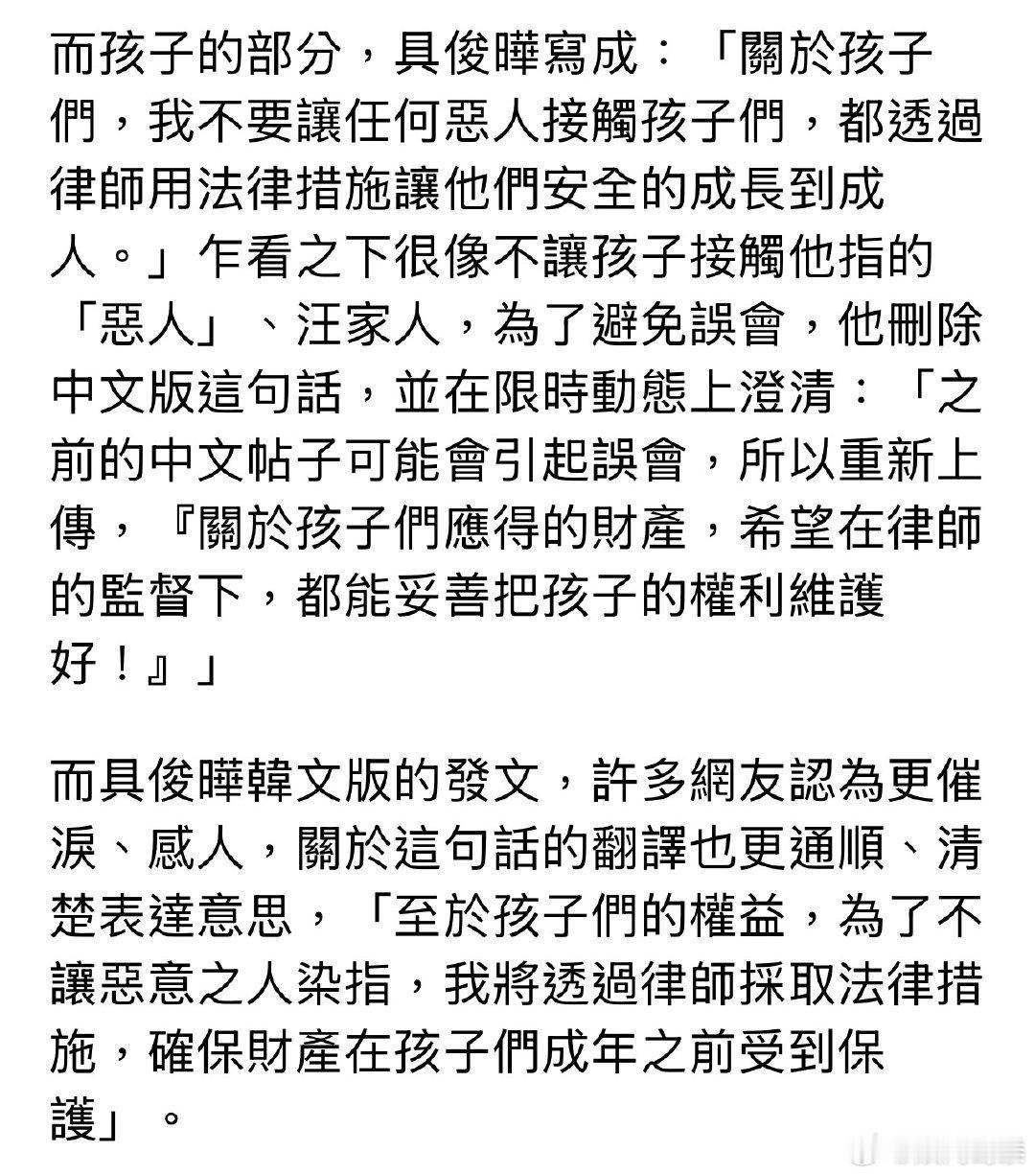 大S老公具俊晔补充声明,称之前中文帖子“不让恶人接触”可能会引起误会,所以重新上传。