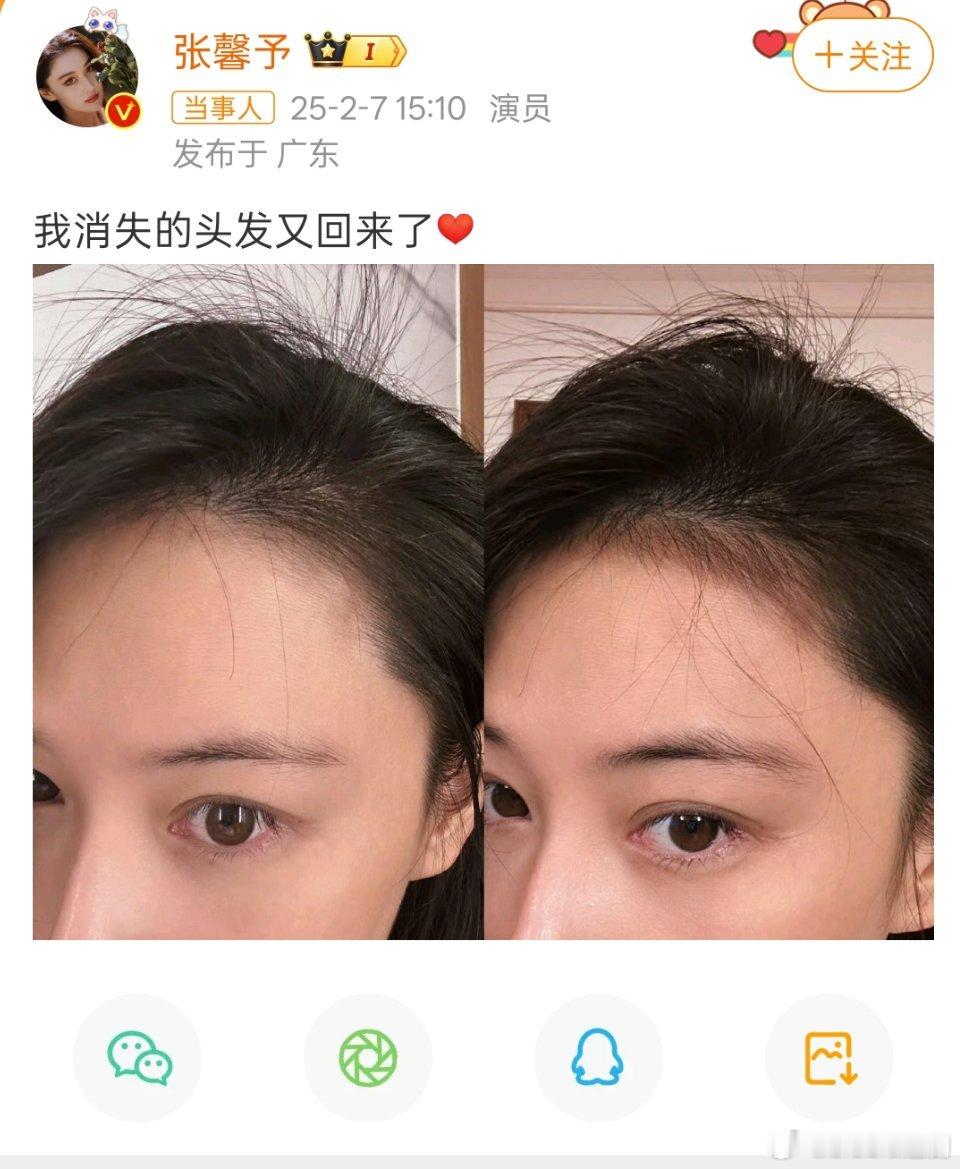 张馨予消失的头发回来了不是,发际线真能养回来啊!!姐姐求教程,我很需要[泪][