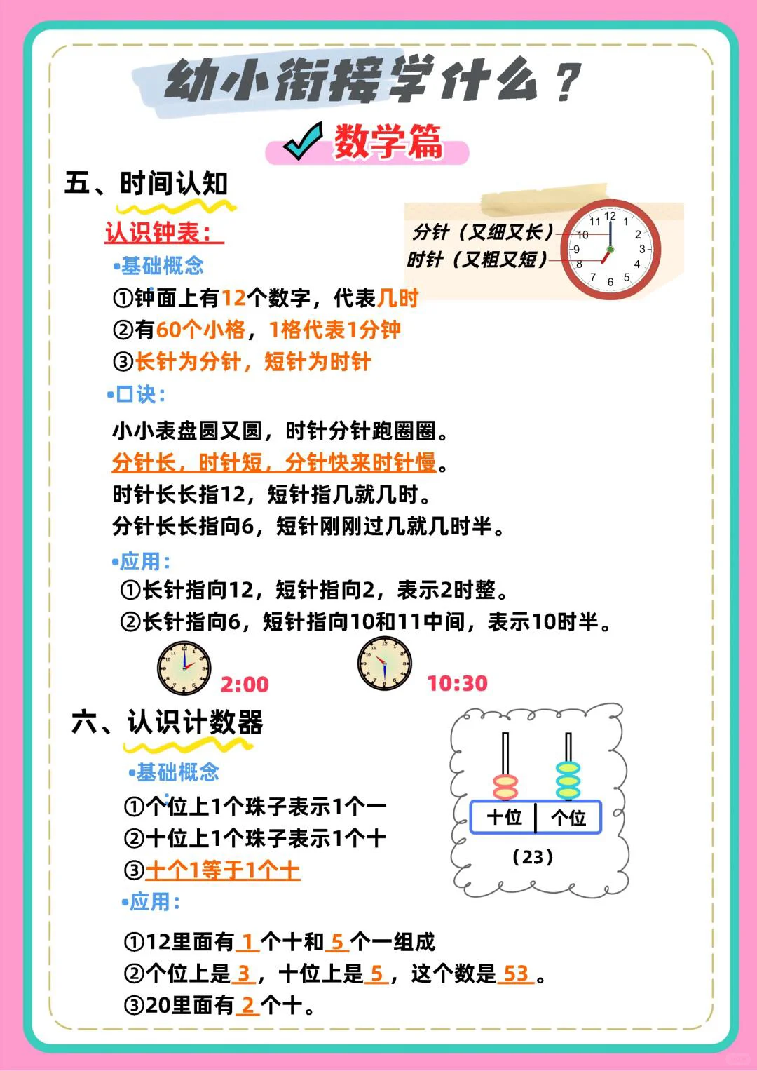 幼小衔接数学学什么?看这组图就够啦!从数字认知到运算,还有图形、时间等知识,超全干货,为孩子轻松过渡小学助力,家长们快收藏!