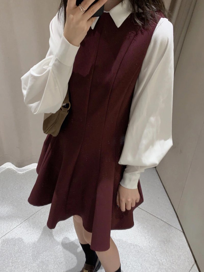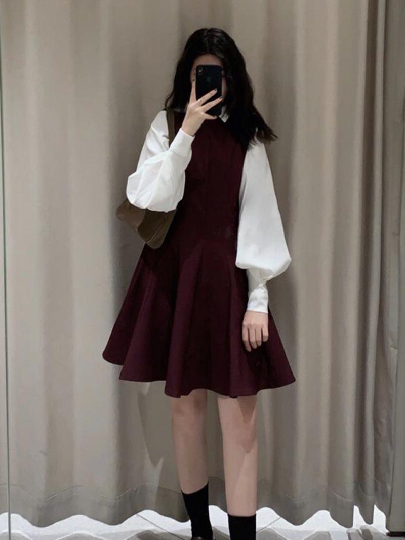 OOTD春季白色灯笼袖衬衫安可拉红背心裙两件套装 穿上它,身体与心灵都能得到很好的照顾。
