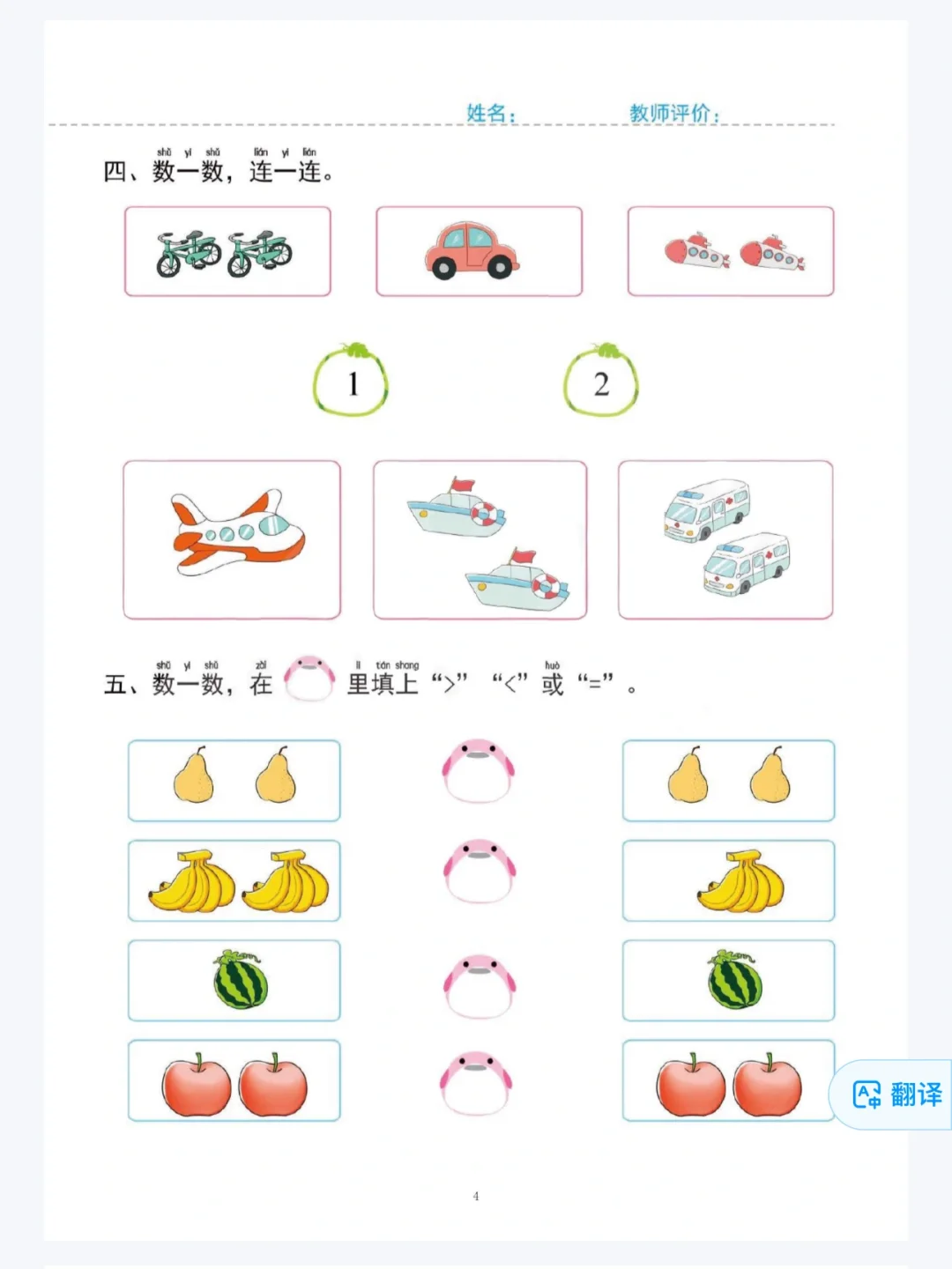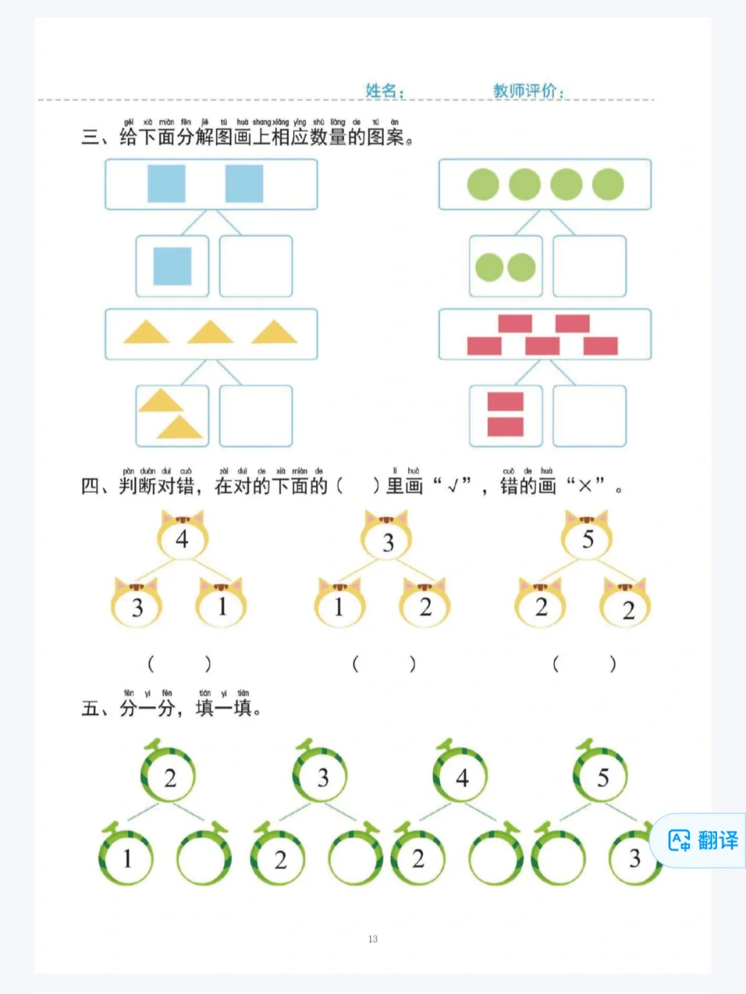 中大班必练!数学启蒙1-5的认识、分解