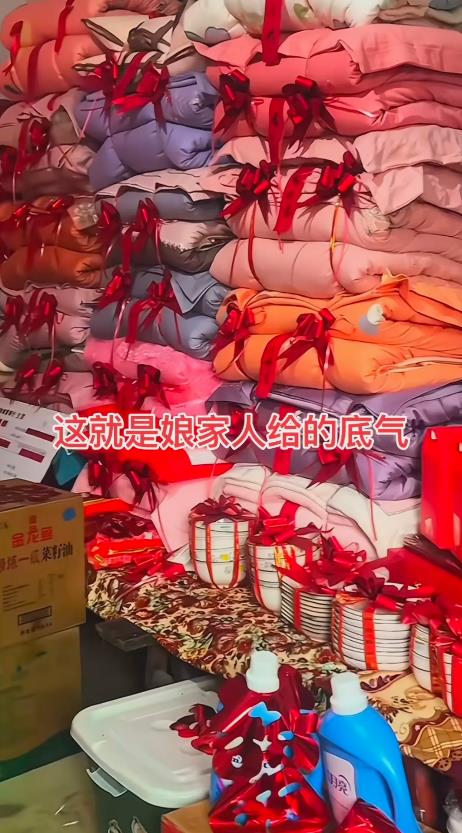 厉害了!湖南一女子结婚,父母陪嫁360床被子,碗筷盆60件,亲戚朋友都说:这是娘家给的底气。