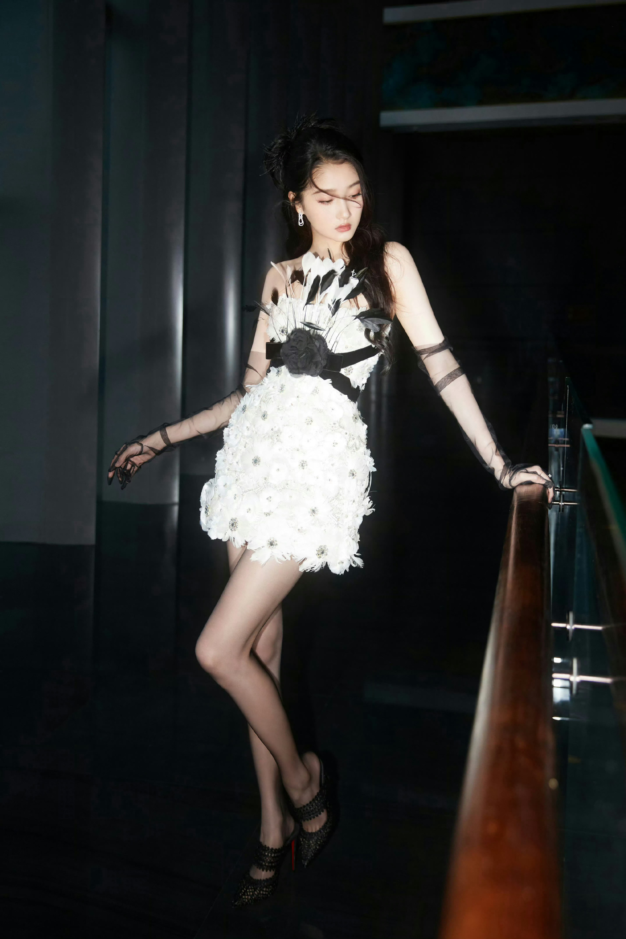 刘亦菲这一身衣服太丑了,用花挡住了才觉得好一点,全靠脸撑着