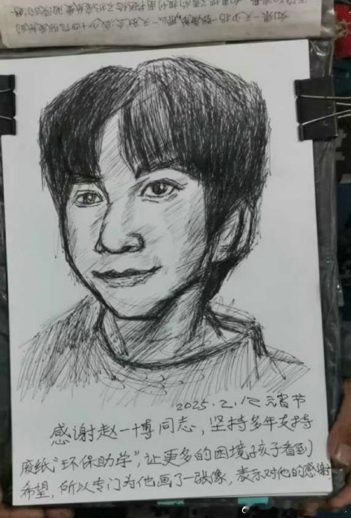赵一博晒刘保叔叔的画 刘保叔叔画的赵一博 赵一博晒的刘保叔叔的画,传递着他们之间的真诚,赵一博和刘保叔叔都很可爱,愿大家都能开心快乐。