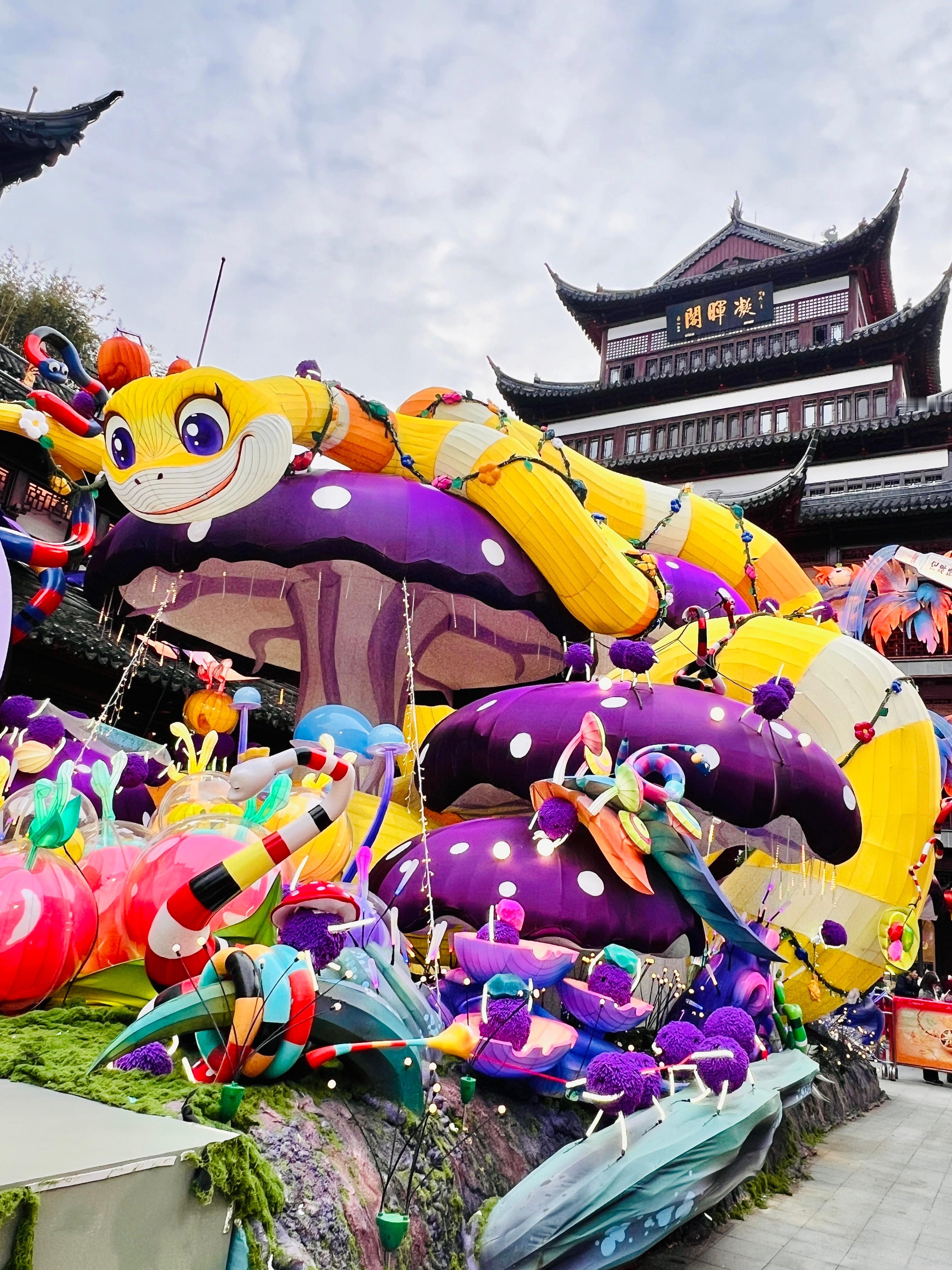 春节假期去上海,赶上了上海 豫园灯会 !真的是美哭了啊!!!!今年灯会的主题是:“万物美好,众生奇妙”,围绕《山海经》故事展开,呈现生肖蛇与山海林木间百鸟百兽交错和谐的场景。白天和夜景都超级美,随手一拍就很出片!祝大家元宵节快乐啊🎉🎉