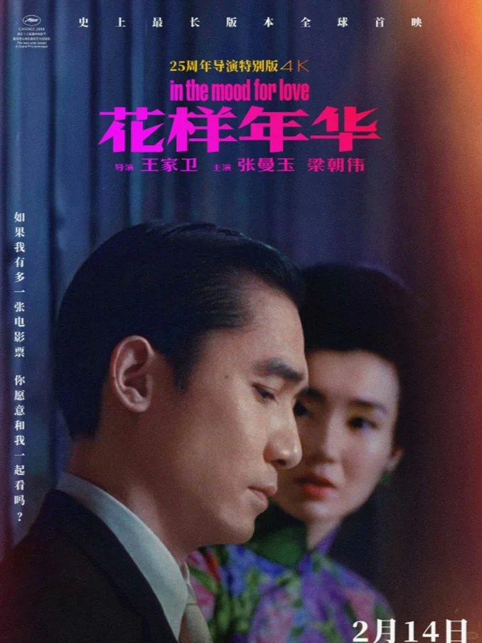 🎬《花样年华》25周年4K导演特别版将在明日(2月14日)情人节上映,期待大银幕再会!! 电影 看电影 电影推荐 电影分享 花样年华 王家卫 香港 梁朝伟 张曼玉
