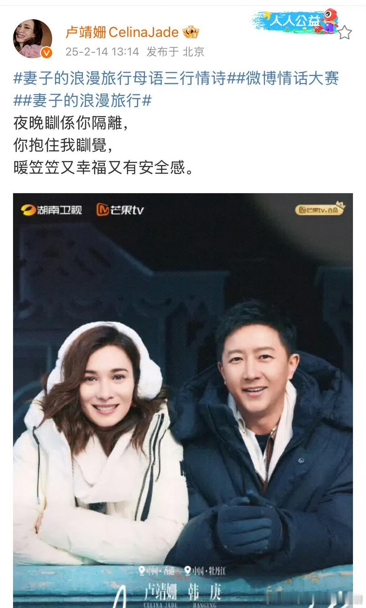 韩庚卢靖姗首次合体录综艺 韩庚卢靖姗互写三行情诗 果然还是真夫妻最好嗑了!!这次永远可以全程磕糖了,期待期待[哇][哇]