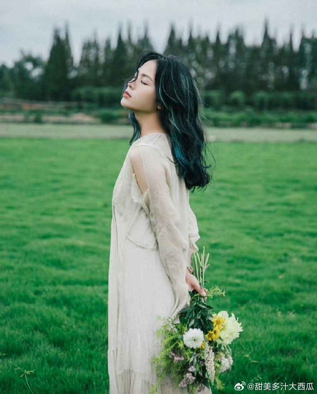 刘亦菲这一身衣服太丑了,用花挡住了才觉得好一点,全靠脸撑着