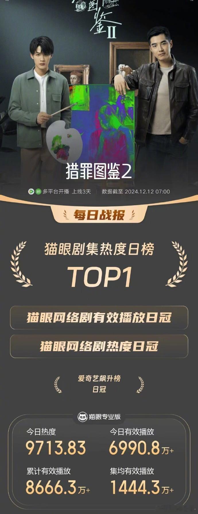 檀健次饰演的沈翊一角连续两天登顶V榜,看来猎罪图鉴2真的是稳开高走,好演员真的给作品加分,檀健次的演技完全惊到我了,细节表情眼神以及肢体动作都抓得很到位,能诠释出这么好的角色也在情理之中。