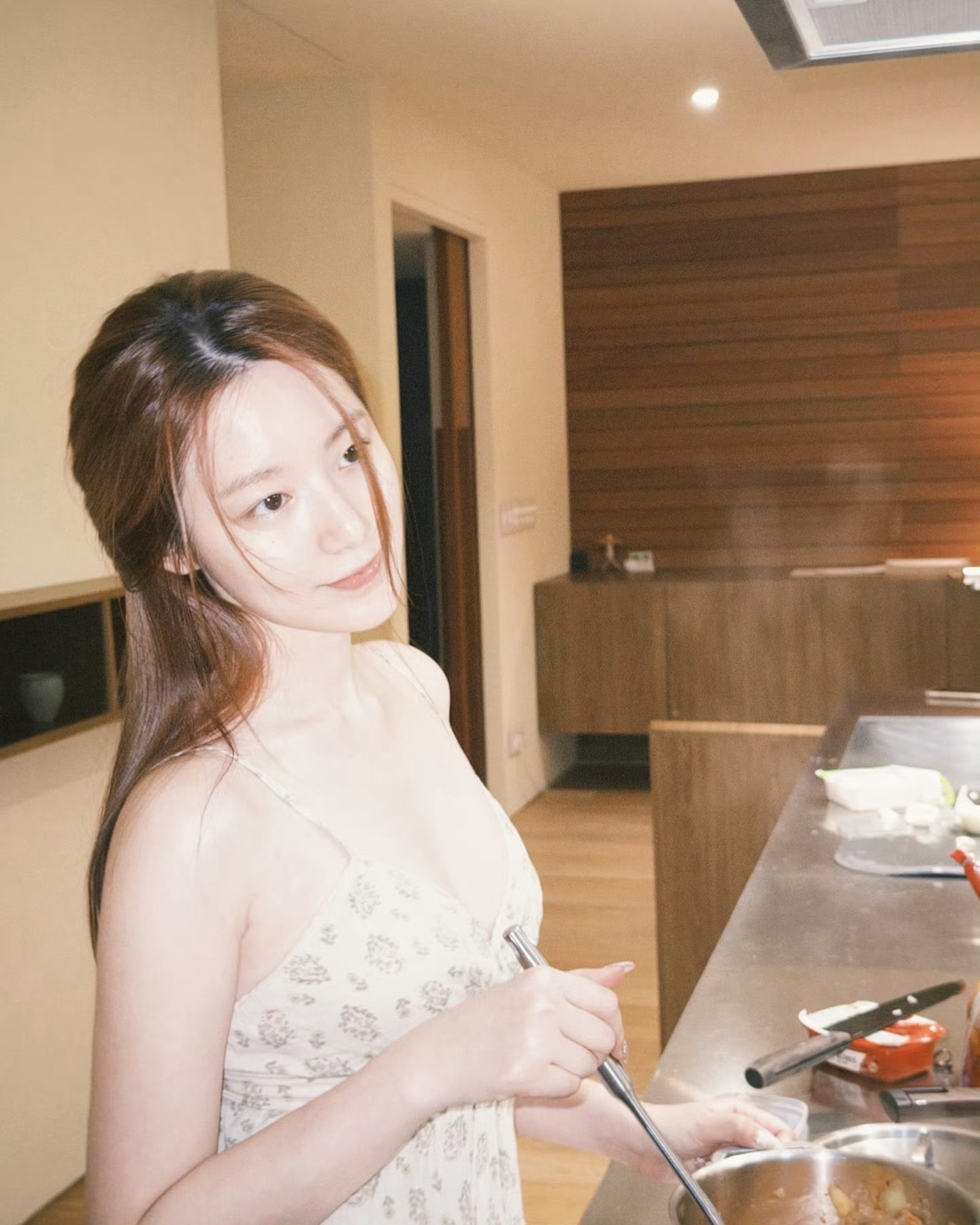 但凡张天爱身上有一点赘肉都穿不了这个衣服
