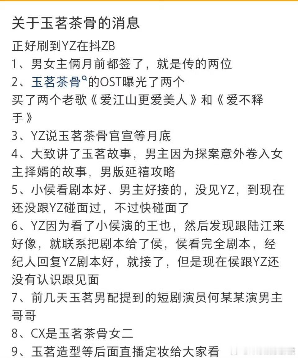 于正直播爆料,新剧《玉茗茶骨》女二是程潇!网传男女主也超有看点,不知道这次程潇会