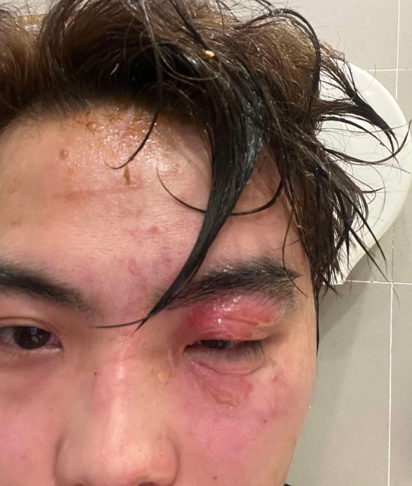 有没有懂法律的 家里老弟 跟别人吃夜宵 人家烤鱼泼到他的脸上 这应该怎么处理啊