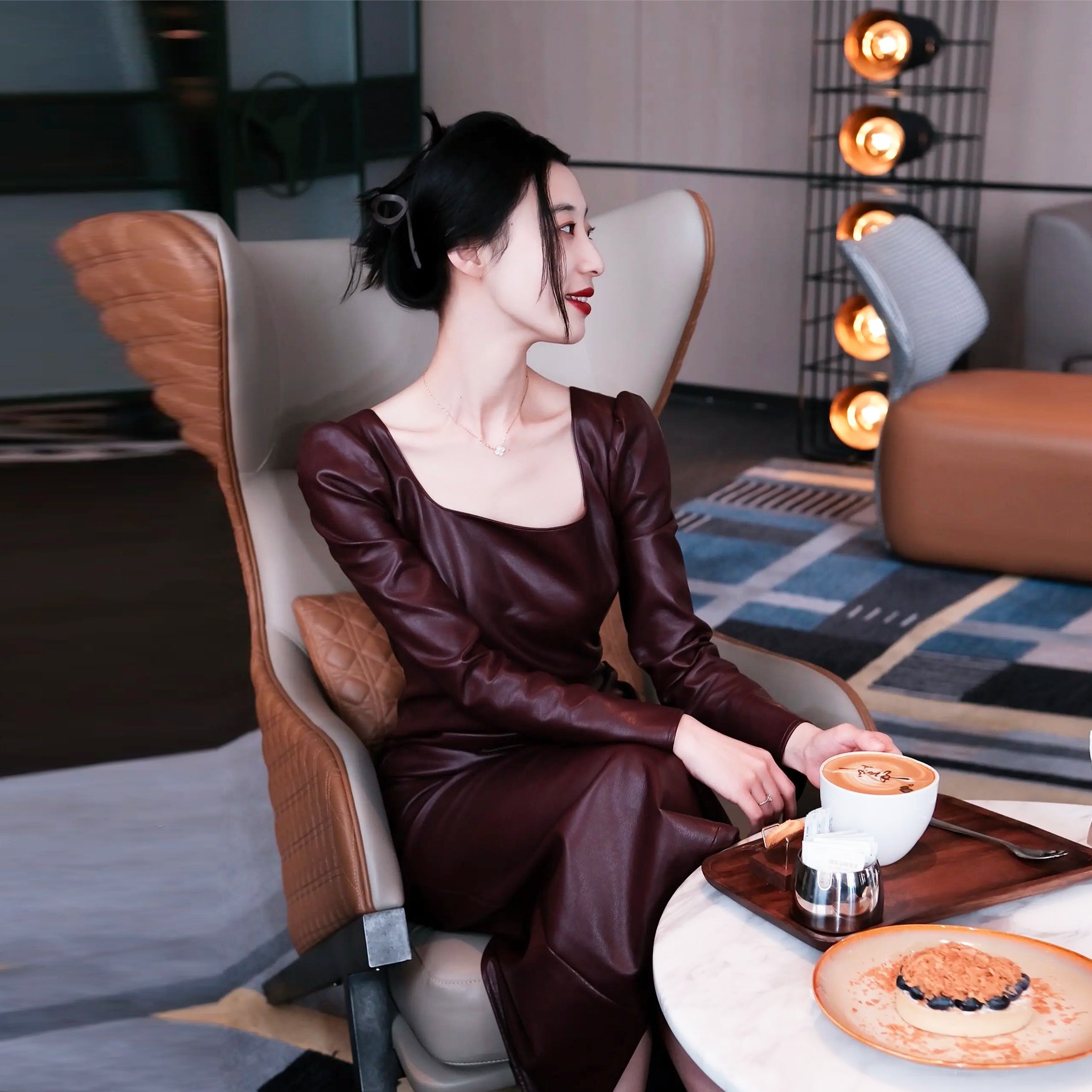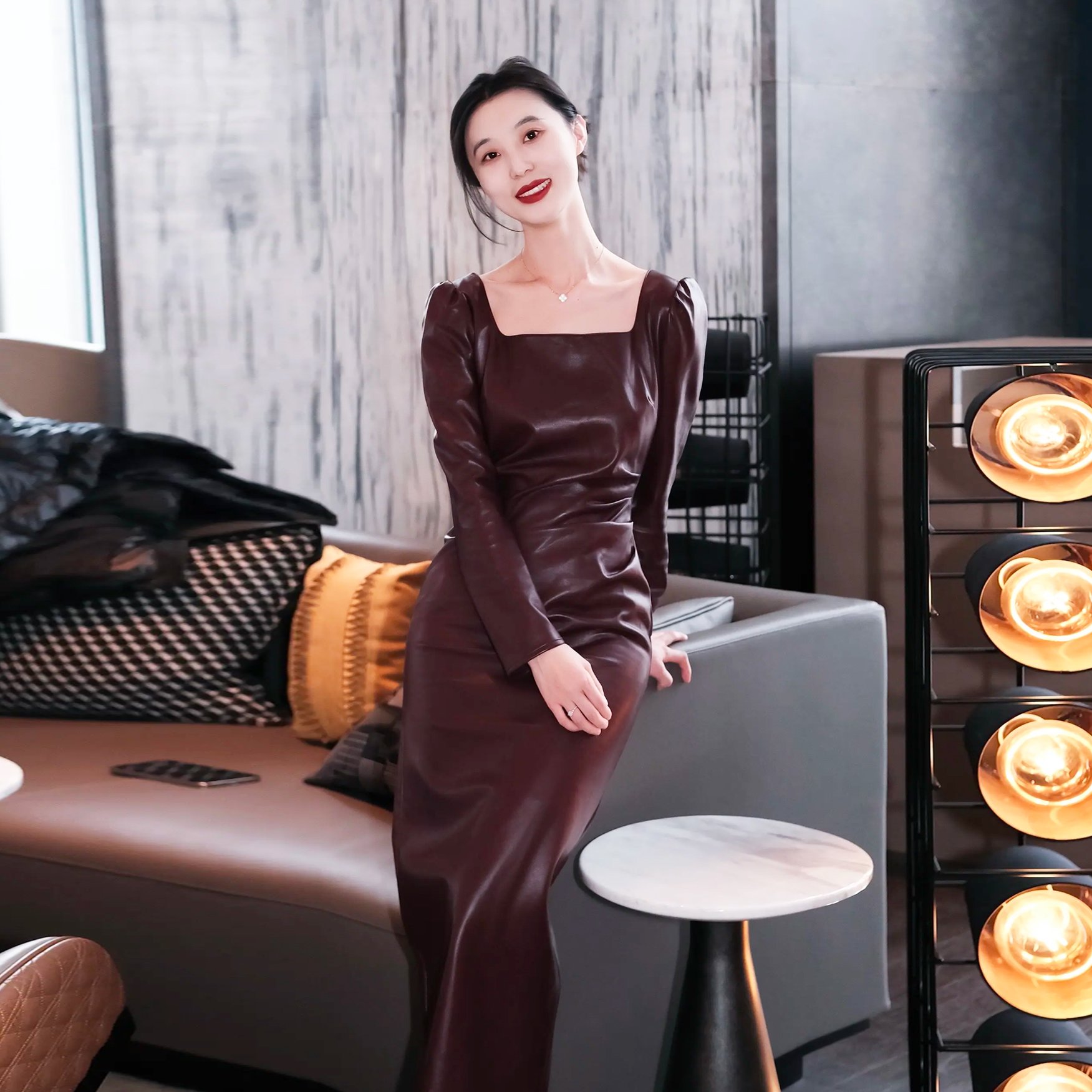 姐姐这身材和气质绝了!淡紫修身裙完美勾勒曲线,胸前饱满、腰肢纤细、臀部圆润,每一