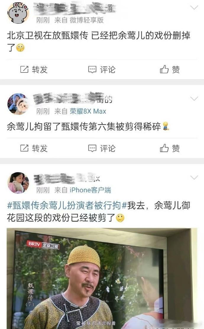 网友发现《甄嬛传》的余莺儿戏份被剪了……电视台反应确实快啊,这部剧的演员们一定都