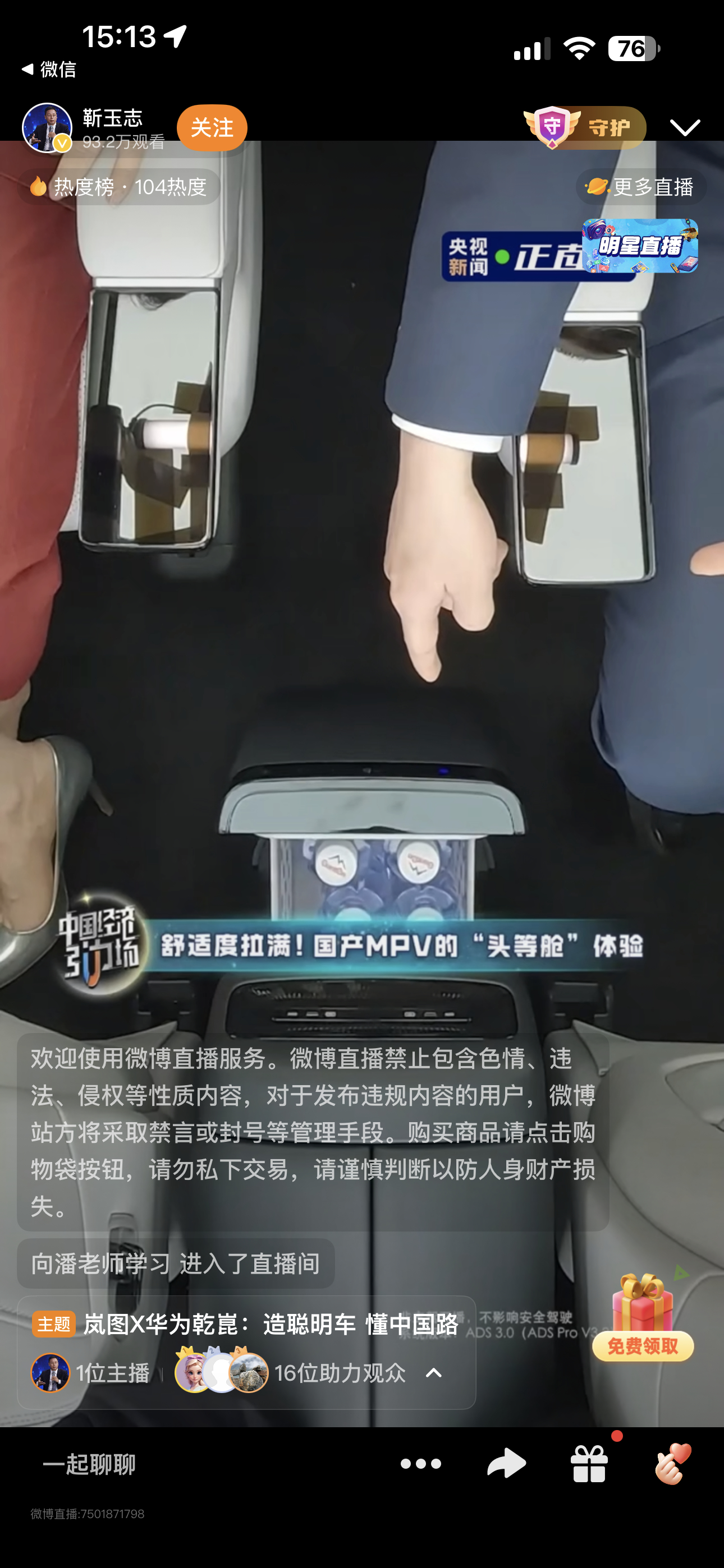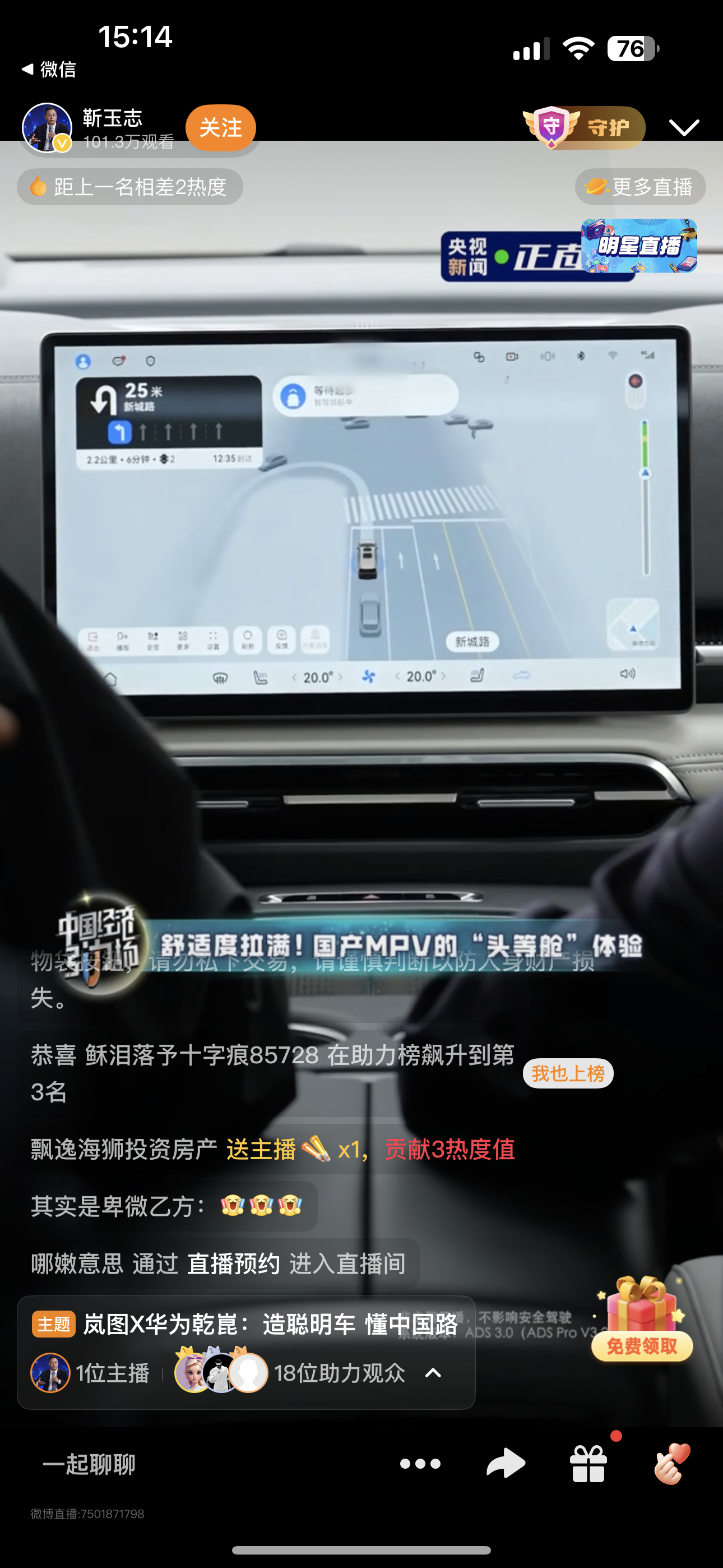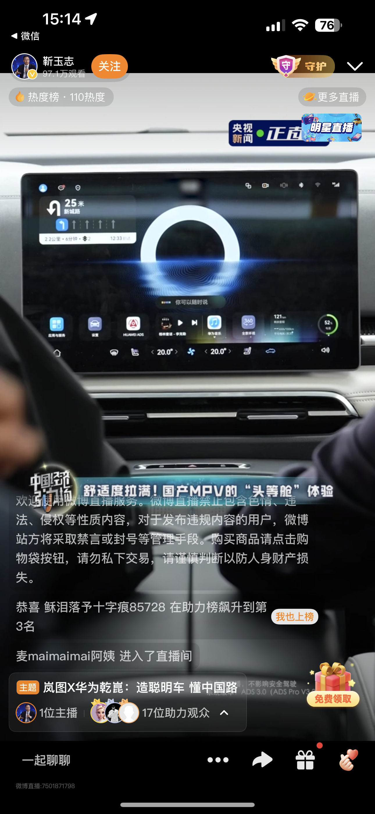 华为乾崑和岚图汽车携手央视新闻的直播,不仅展示了岚图梦想家MPV的优秀智能座舱体验,还有乾崑智驾带来的车位到车位的精准智驾能力。