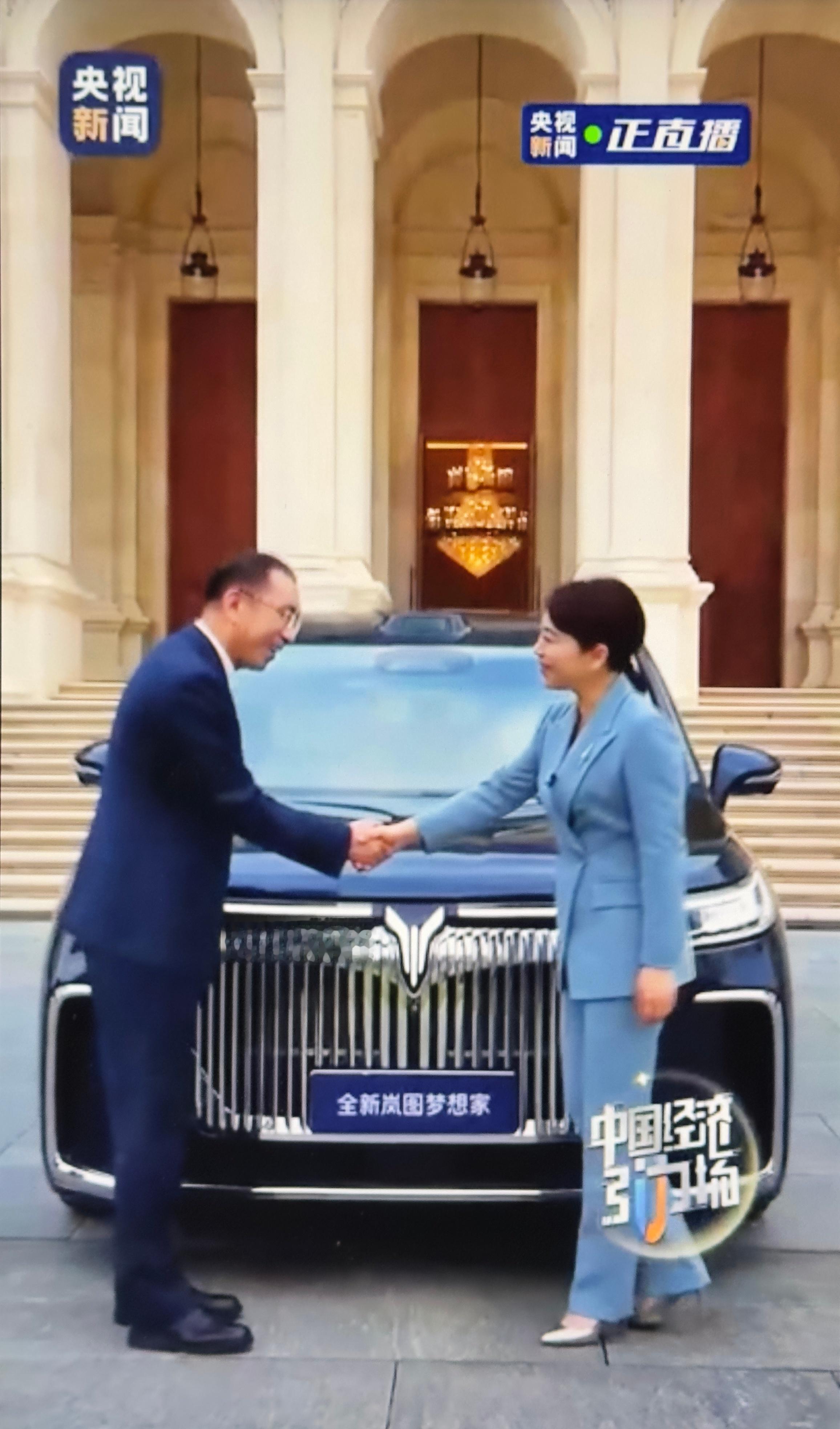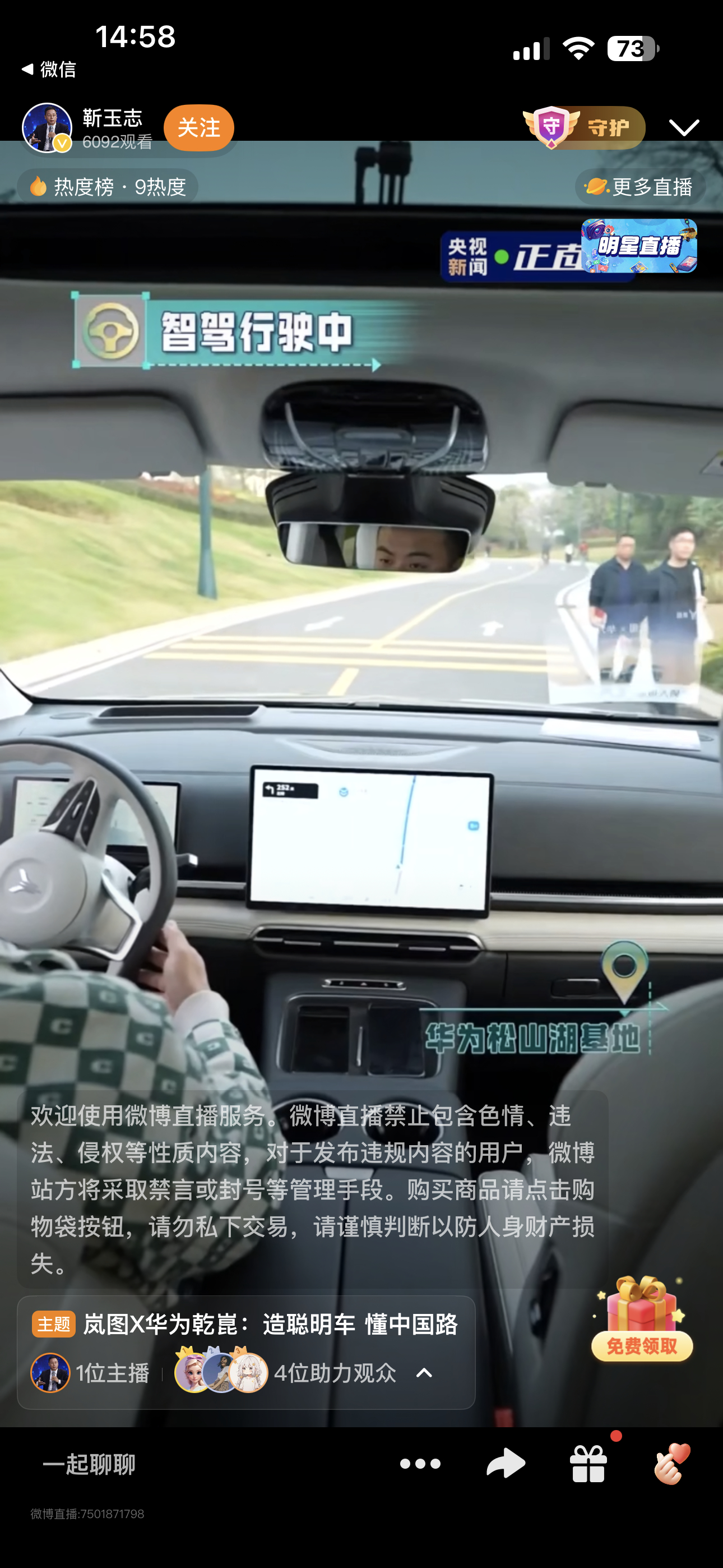 华为乾崑和岚图汽车携手央视新闻,在松山湖园区有一场直播活动。