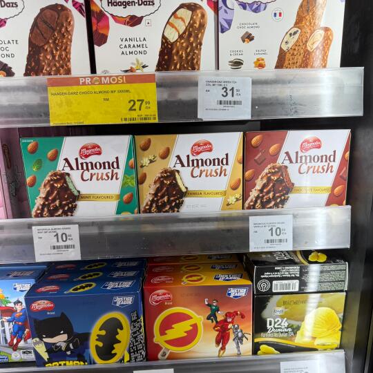 每根仅 RM2.70 享用真正的杏仁,搭配丰富的巧克力外壳,绝对让你大吃一惊!🤯 三种美味的口味:巧克力、薄荷或香草 — 价格仅为每根 RM2.70 或 4根装多包 RM10.70。如果一根不够,还可以选择4根装哦! 📍 在 AEON、AEON Big 和 Giant 有售 MagnoliaIceCreamMY MagnoliaAlmondCrush OverflowingAlmonds