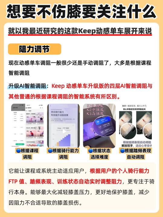 keep动感单车搭载的👉🏻4层AI智能调阻体系堪称“黑科技”。以前骑普通动感单车,总感觉阻力一直调不到适合自己的,但keep这款完全不用我操心这些,它会根据我📍当天状态、骑行能力、踏频表现综合匹配最合适我的阻力,即使同一个课程,也能每天有不一样的骑行体验,更好保护膝盖。