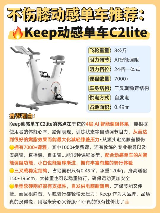 用keep动感单车(C2 lite),不用再担心骑动感单车伤膝盖。而且Keep 作为大品牌,品质真的没得说,用起来安心又舒服~1k+真的很有性价比了👍🏻用科技和专业为居家健身保驾护航~