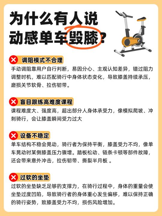 ⭕️首先给大家科普一下为什么有人说动感单车毁膝?其实,只要运动就会对膝盖产生一定压力,动感单车也不例外。